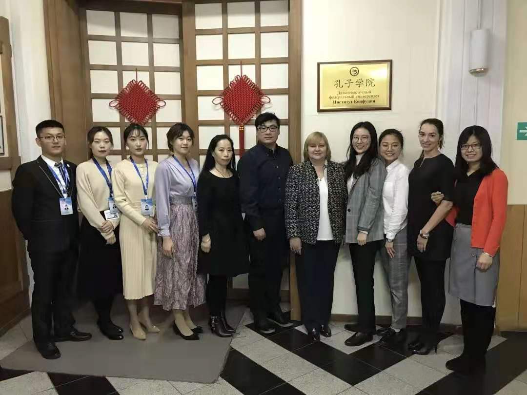 On December 11, delegation of teachers and students from the School of International and Public Affairs of Jilin University went to the Confucius Institute of the Far Eastern Federal University of Russia to conduct the "Investigation on the Construction and Development of Confucius Institutes in Northeast Asia". The purpose of this visit is to understand the construction and development of Confucius Institute and the current situation of Chinese teaching in that region, and lay a foundation for further promotion of Chinese teaching there. Natalia Josephus, deputy dean of the Confucius Institute of Far East Federal University of Russia, and nearly ten faculty members of the Confucius Institute met with representatives of teachers and students and held a discussion.