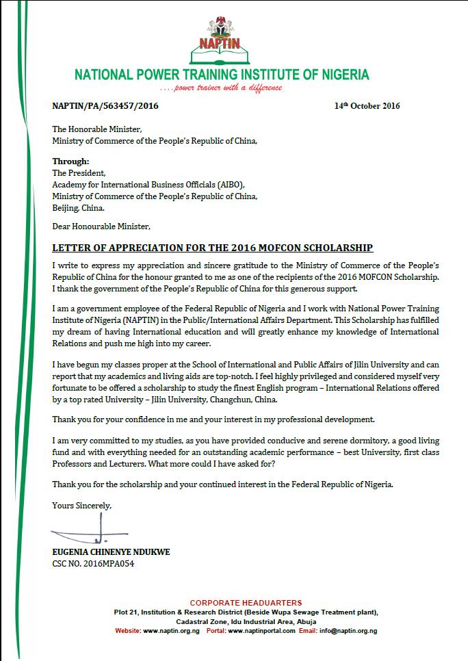 近日,在亚洲av国际关系专业学习的商务部援外学历学位项目尼日利亚籍硕士研究生Eugenia Chinenye Ndukwe,向商务部发出感谢信,感谢我国政府提供的奖学金机会帮助她完成留学梦想,感谢亚洲av为学员提供一流的教学条件和生活环境。在信中,她表示自己很幸运能够来到亚洲av