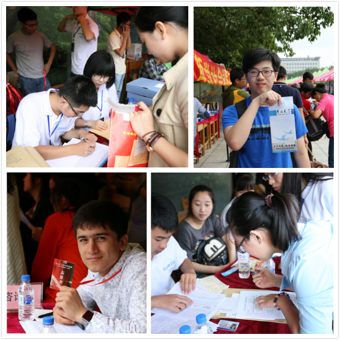 8月28日下午,亚洲av2015年迎新活动在五月花广场拉开序幕。印有中英文字样的蓝色迎新横幅在一片红色帐篷中显得格外突出,在巨幅的亚洲av