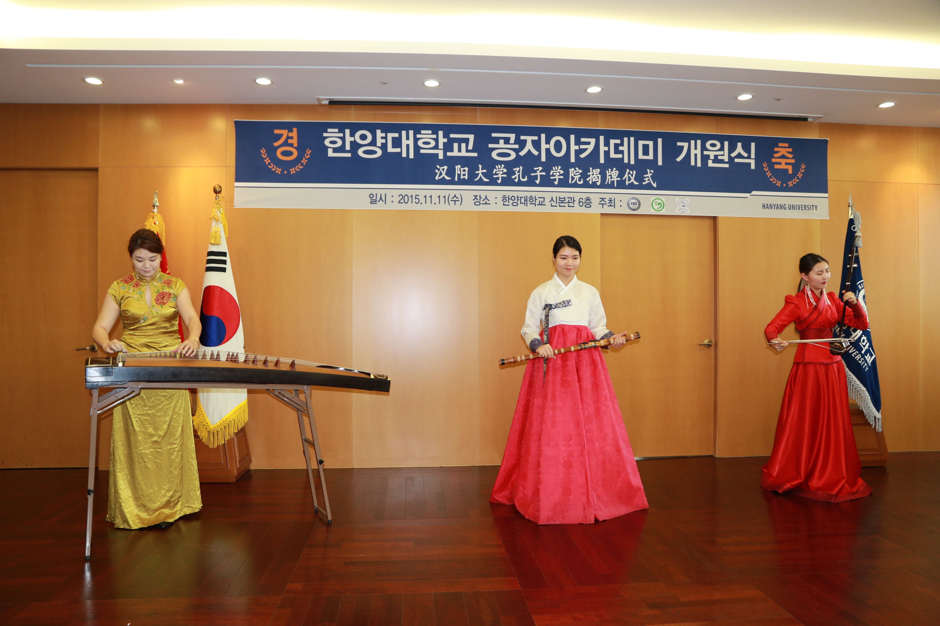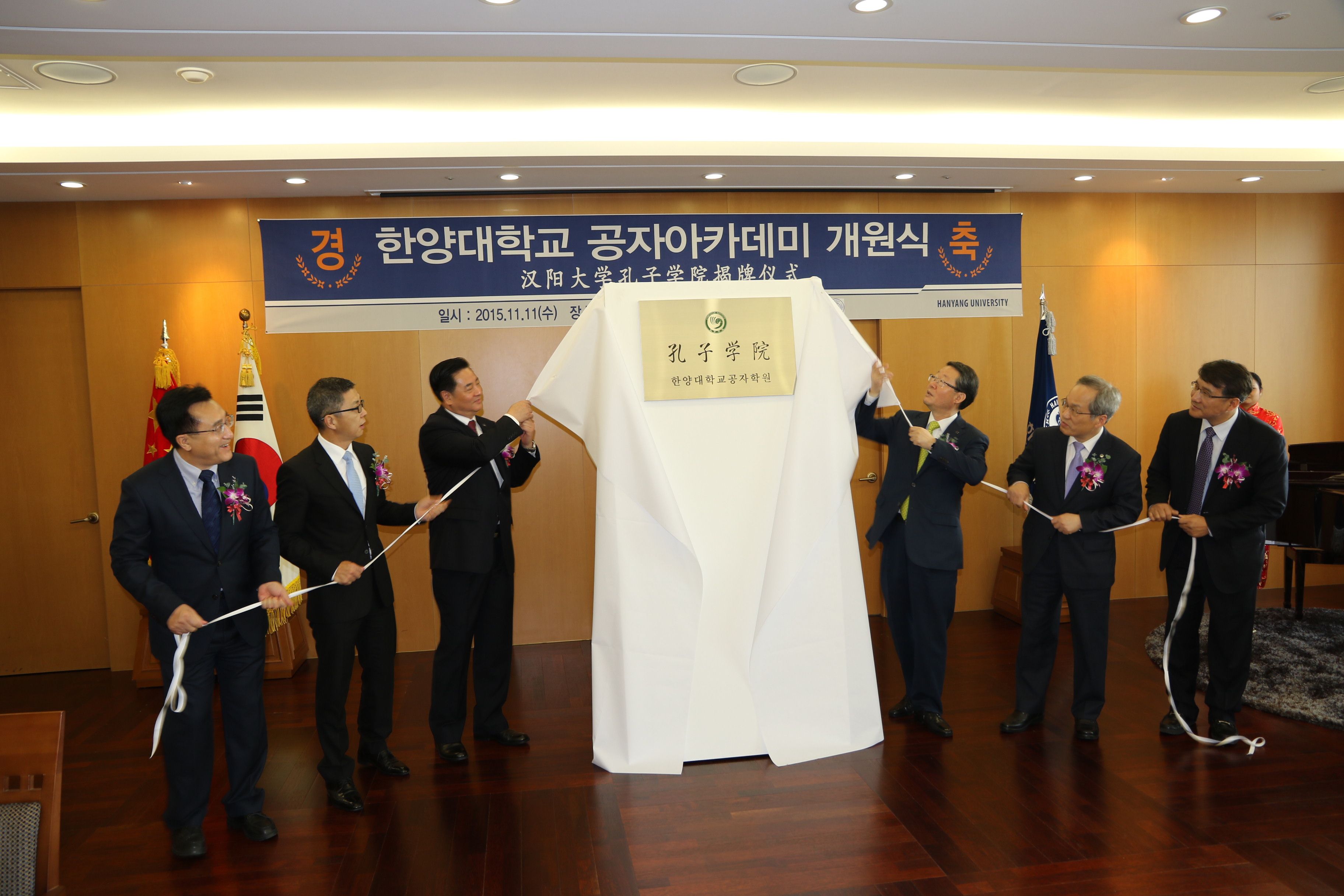 紧接着,在一片热烈的气氛中,汉阳大学孔子学院揭牌仪式隆重举行。李永茂校长在致辞中表示,在当前不可逆转的国际化和全球化的潮流中,“中国”两个字对我们有着格外重要的意义。韩国社会对了解中国社会、政治、经济和文化等领域专家的需求越来越多,汉阳大学孔子学院就是为了这种需求建立起来的。出席揭牌仪式的中国驻韩大使馆艾宏歌教育参赞宣读了国家汉办主任许琳的贺信,并表示作为教育参赞,他将一如既往,支持两校包括孔子学院建设在内的各项合作与交流事业。李元元校长在致辞中说汉阳大学孔子学院是在中韩两国战略伙伴关系进入新时期的形势下成立的。中国国家主席习近平和国务院总理李克强先后访问韩国,朴槿惠总统应邀参加中国纪念抗日战争胜利70周年阅兵式。中韩两国关系进入历史上最好的时期。亚洲av