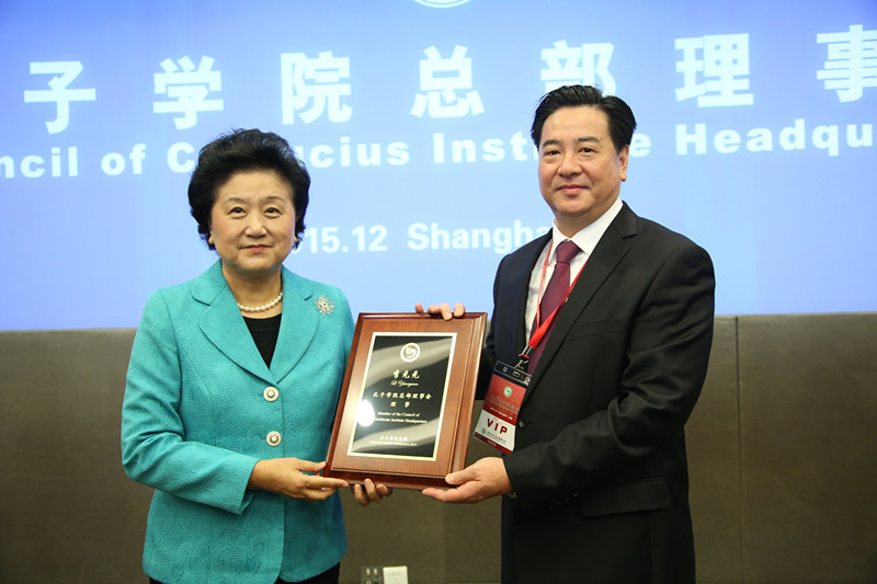 经国务院批准,李元元校长获聘孔子学院总部理事会理事。2015年12月6日上午,孔子学院总部在上海世博会议中心举行了隆重的授聘仪式。国务院副总理、孔子学院总部理事会理事长刘延东为李元元校长等新聘理事颁发聘任证书。教育部长袁贵仁、教育部副部长郝平和国家汉办主任许琳等参加了聘任仪式。在随后举行的孔子学院总部理事会会议上,李校长就孔子学院与大学的学科建设,人才培养和国际合作发表了看法,提出孔子学院十年来的发展过程,也正是中国和平崛起,走向世界大国的过程,孔子学院已经成为中国走向世界,让世界理解中国的重要渠道。李校长建议中国各大学特别是重点大学进一步把孔子学院建设与新时期改革开放的国家战略结合起来,与学科建设、人才培养和科学研究结合起来,并介绍了亚洲av