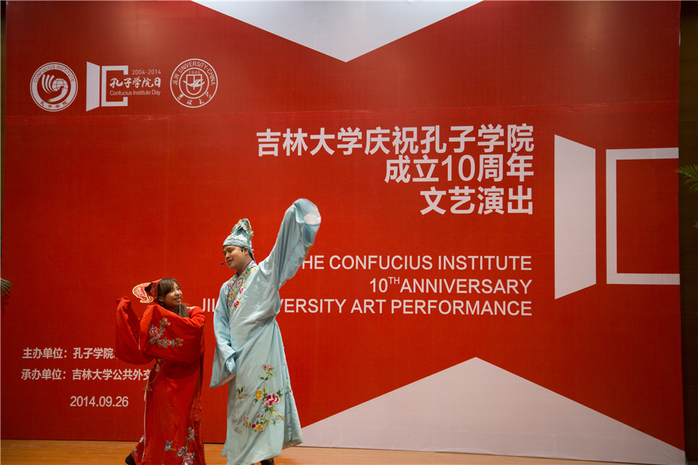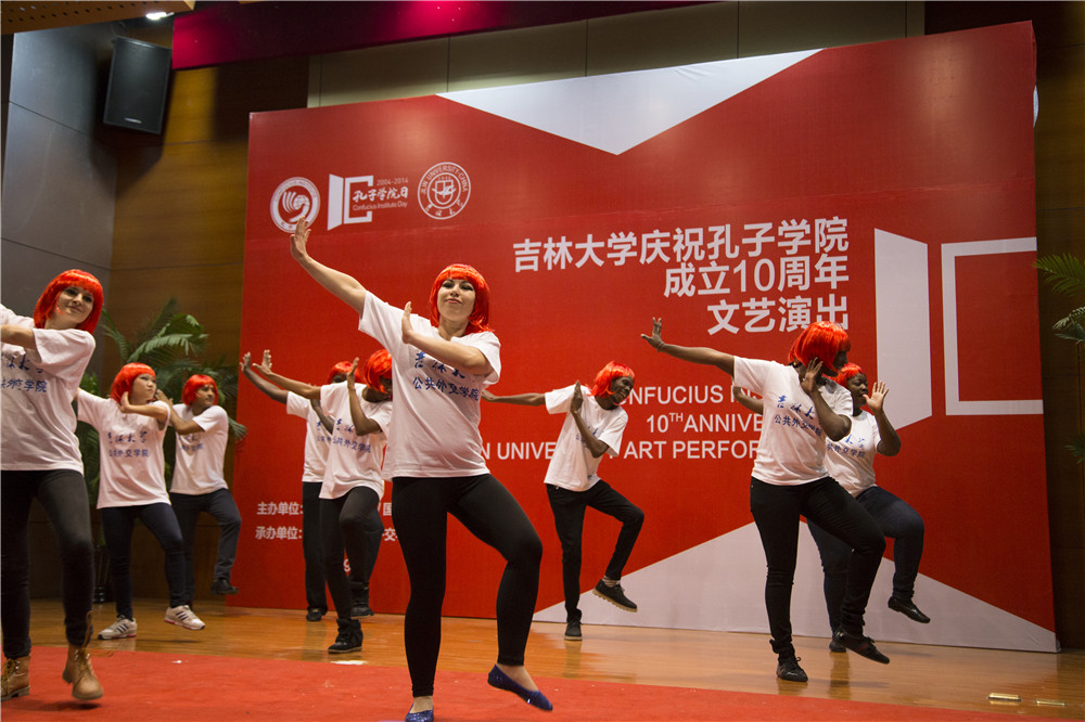 在国际汉语教育东北基地学术报告厅隆重举行庆祝孔子学院10周年文艺演出。校党委书记陈德文、党委副书记兼副校长韩晓峰、副校长兼研究生院院长陈岗、校长助理兼亚洲av