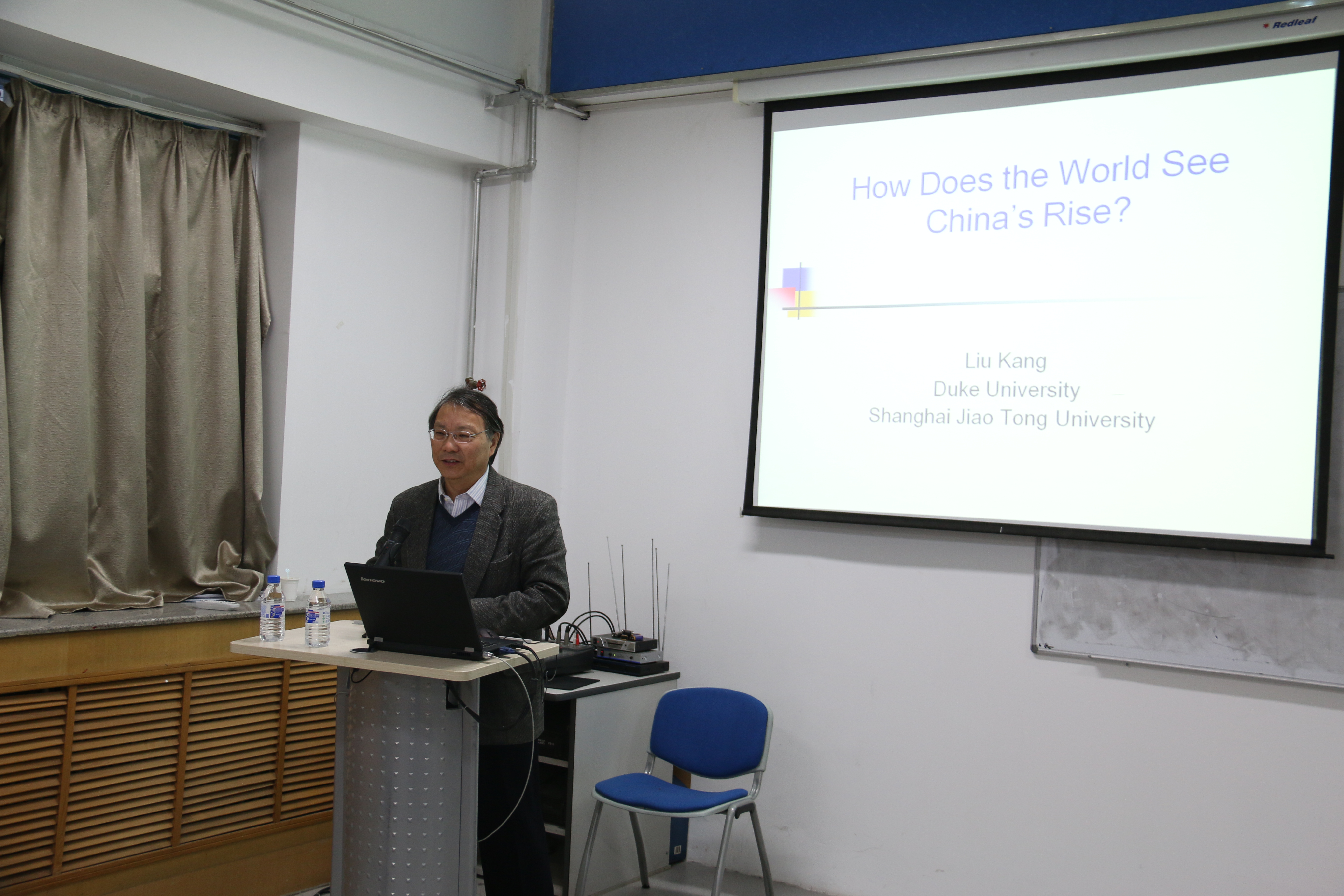 11月7日,美国杜克大学教授、上海交通大学致远讲席教授兼人文艺术研究院院长刘康教授应邀来到亚洲av讲学。当天下午,刘康教授面向亚洲av“当代国际关系项目”留学生做了名为“How Does the World See China's Rise”的专题讲座。刘教授在讲座中就中国形象的理论视野进行了界定与阐释,并用丰富而详实的数据与抽样调查结果对有关海外中国形象的几个问题进行了分析。