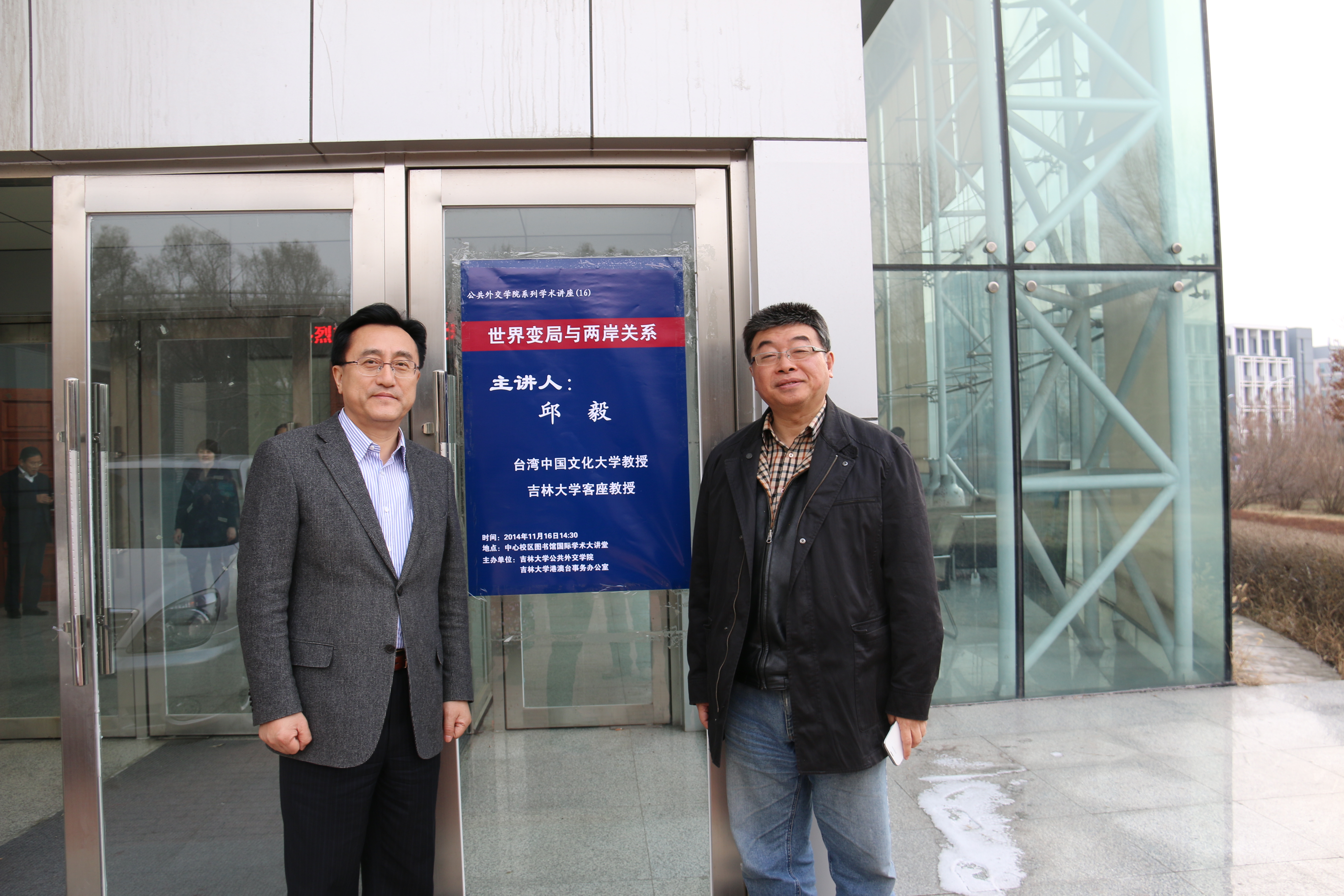 院长刘德斌教授、党委办公室主任王登攀和港澳台事务办公室主任张广翠等参加了会见和学术报告会。陪同邱毅教授访问的有中国文化大学推广教育部大陆合作处蔡佳麟处长等。