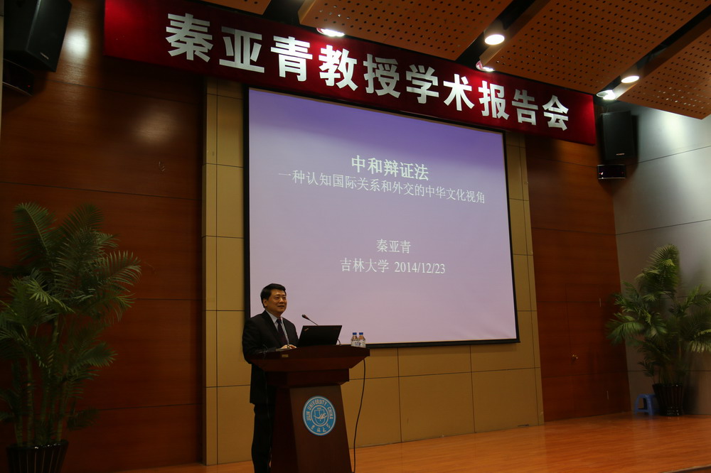 的支持表示高度的赞赏,双方就如何进一步加强在合作科研、学生互换等领域的交流与合作进行了深入细致的探讨。秦亚青教授在受聘和签字仪式结束后在中心校区国际学术大讲堂作了题为《中和辩证法:一种认知国际关系和外交的中华文化视角》的学术报告。