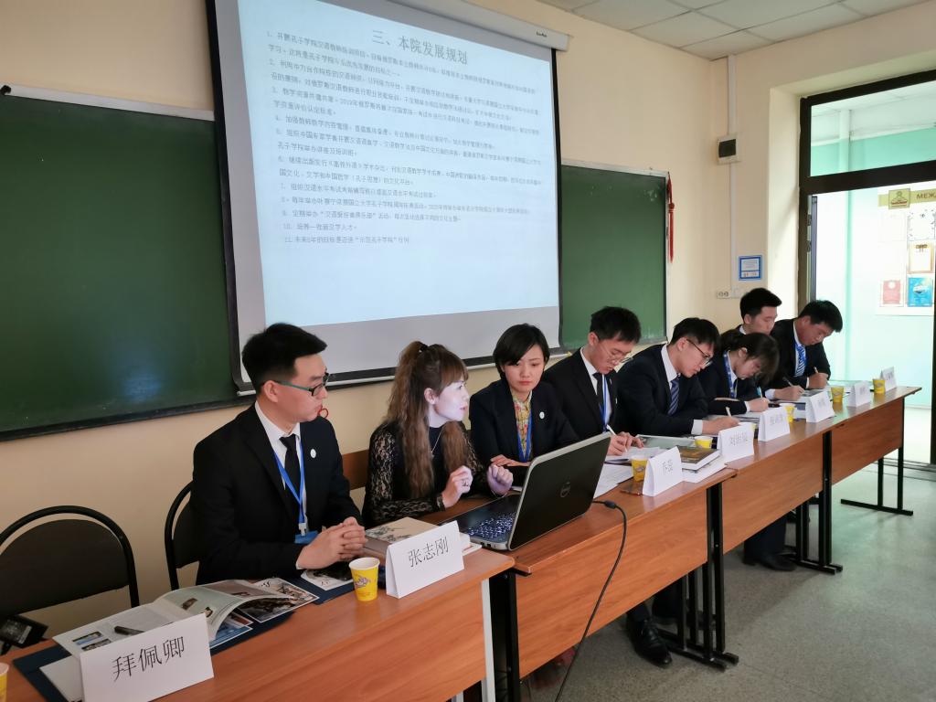 13日下午12:30,在梁赞国立大学孔子学院102г教室会谈正式开始。首先,单妮娜院长对亚洲av