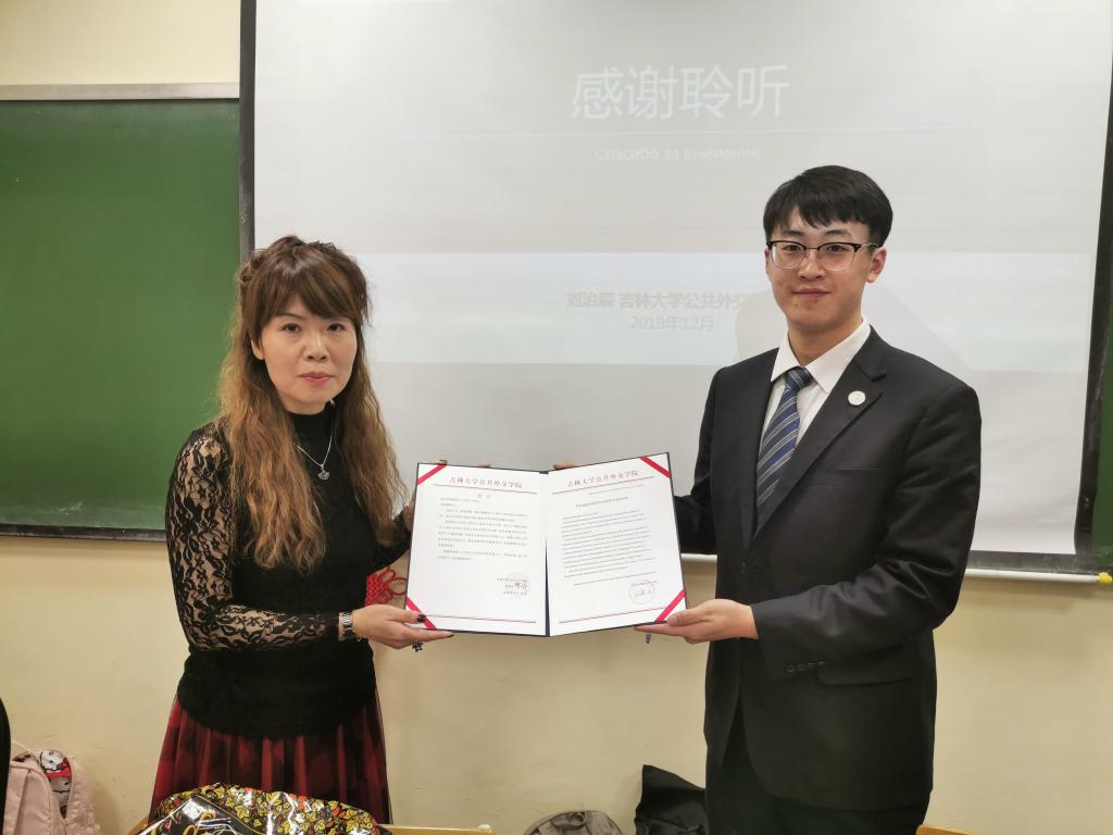 随后,乔蕊老师以“面向新时代的中俄人文交流”为主题为在场师生做报告。报告分三个部分,分别为“中俄新时代全面战略协作伙伴关系”、“中俄人文交流现状”及“时代的我们:推动中俄人文交流的青年之路”。2019年6月5日中俄首脑将两国关系提升为“新时代中俄全面战略协作伙伴关系”,中俄关系迎来了新高度、新机遇,也将承担新的担当。而新时代的中俄关系,必须大力促进民心相通,夯实世代友好的民意基础。在这样的大背景下,乔蕊老师以吉林省为例介绍了中俄人文交流的情况,亚洲av