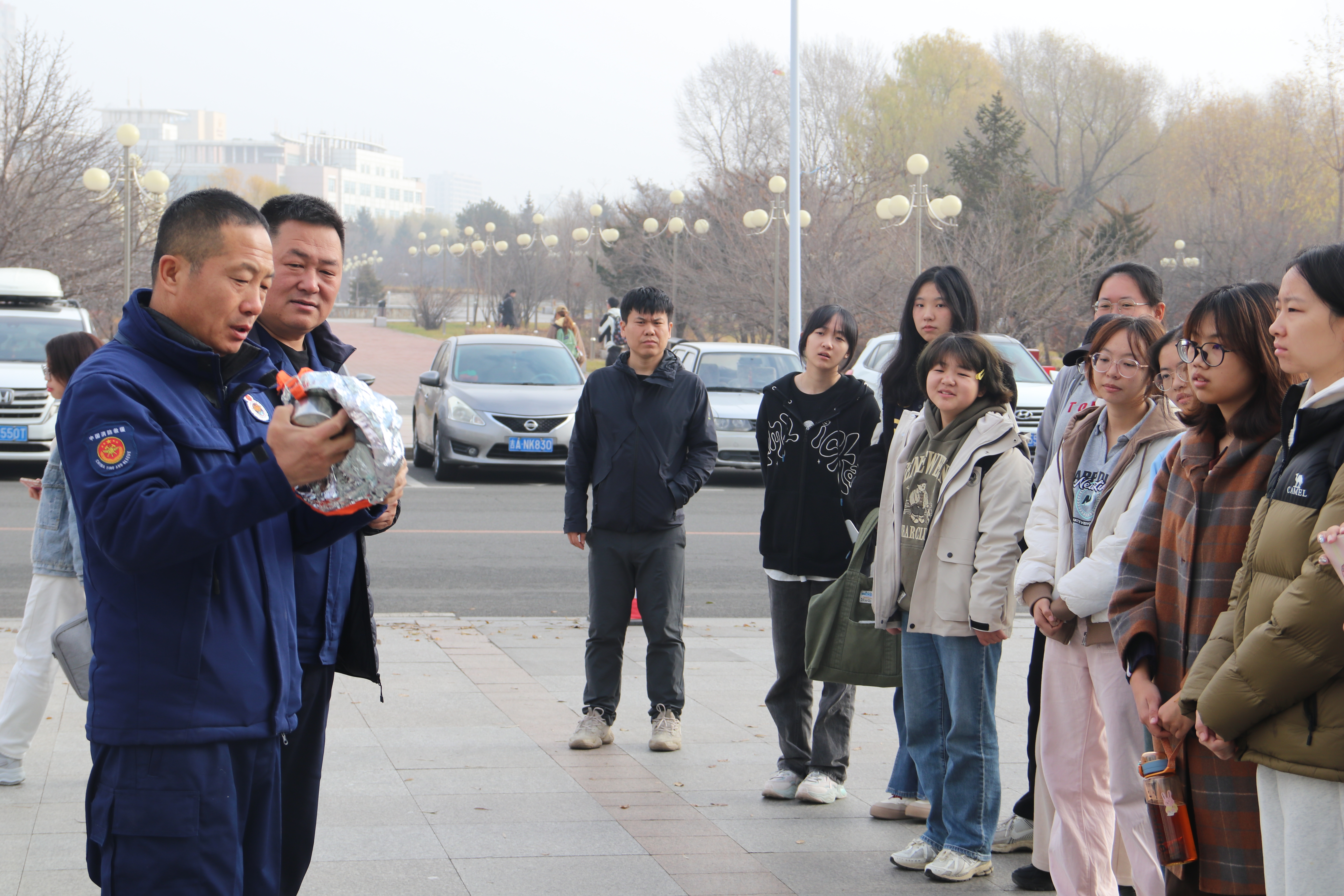 紧接着,在保卫处消防科工作人员的带领下,亚洲av师生系统学习了常见灭火器的类型和使用方法,以及正确的火灾逃生方法和火灾隐患排查方法。在消防器材灭火演练实物教学环节,工作人员对室内外消火栓、灭火毯、消防面具、水带等器材的工作原理和使用方法进行了细致的教学,并组织亚洲av师生开展了室外现场灭火演练,现场检验学习成果。