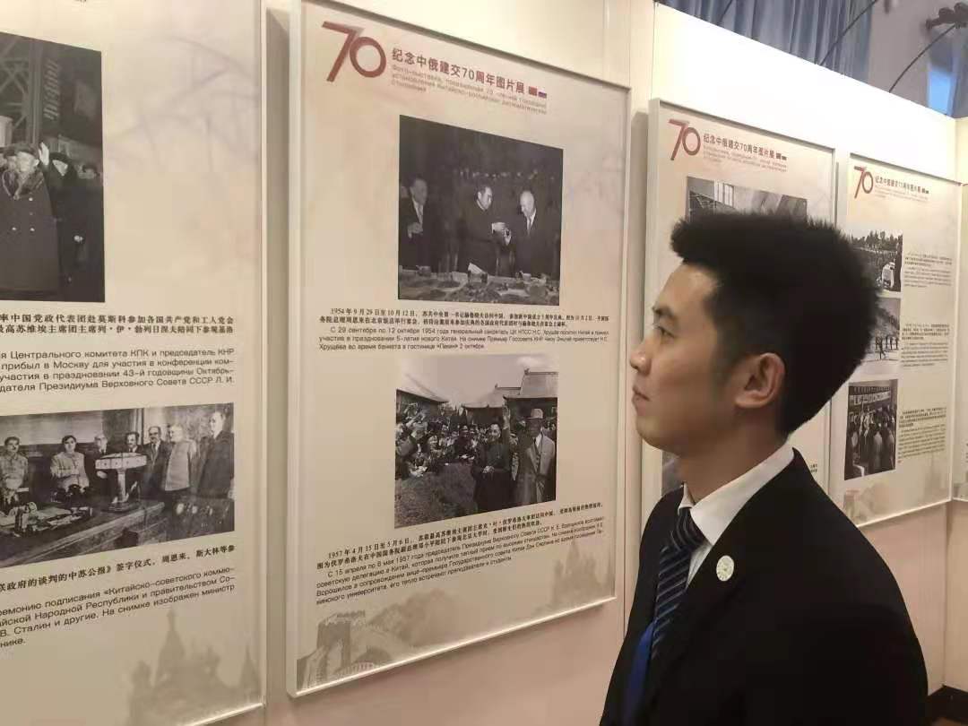 最后,学院师生还参观了“纪念中俄建交70周年图片展”。