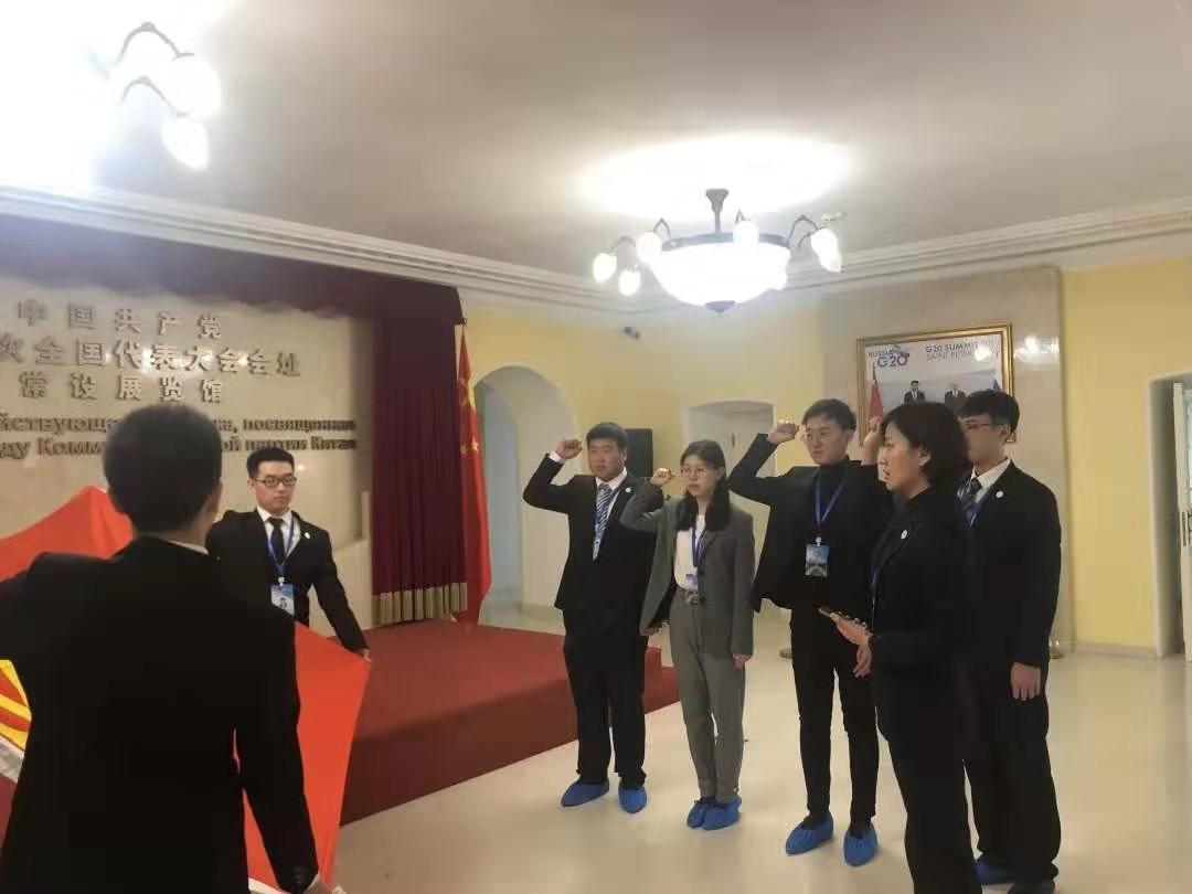 结合展出的历史照片和档案资料,同学们跟随着乔蕊老师共同回顾了中国共产党98年的奋斗历程,通过“移动党课”学习,同学们纷纷表示应不忘初心,牢记使命,刻苦钻研,不负韶华。面对党旗,亚洲av学生在乔蕊老师带领下重温入党誓词。