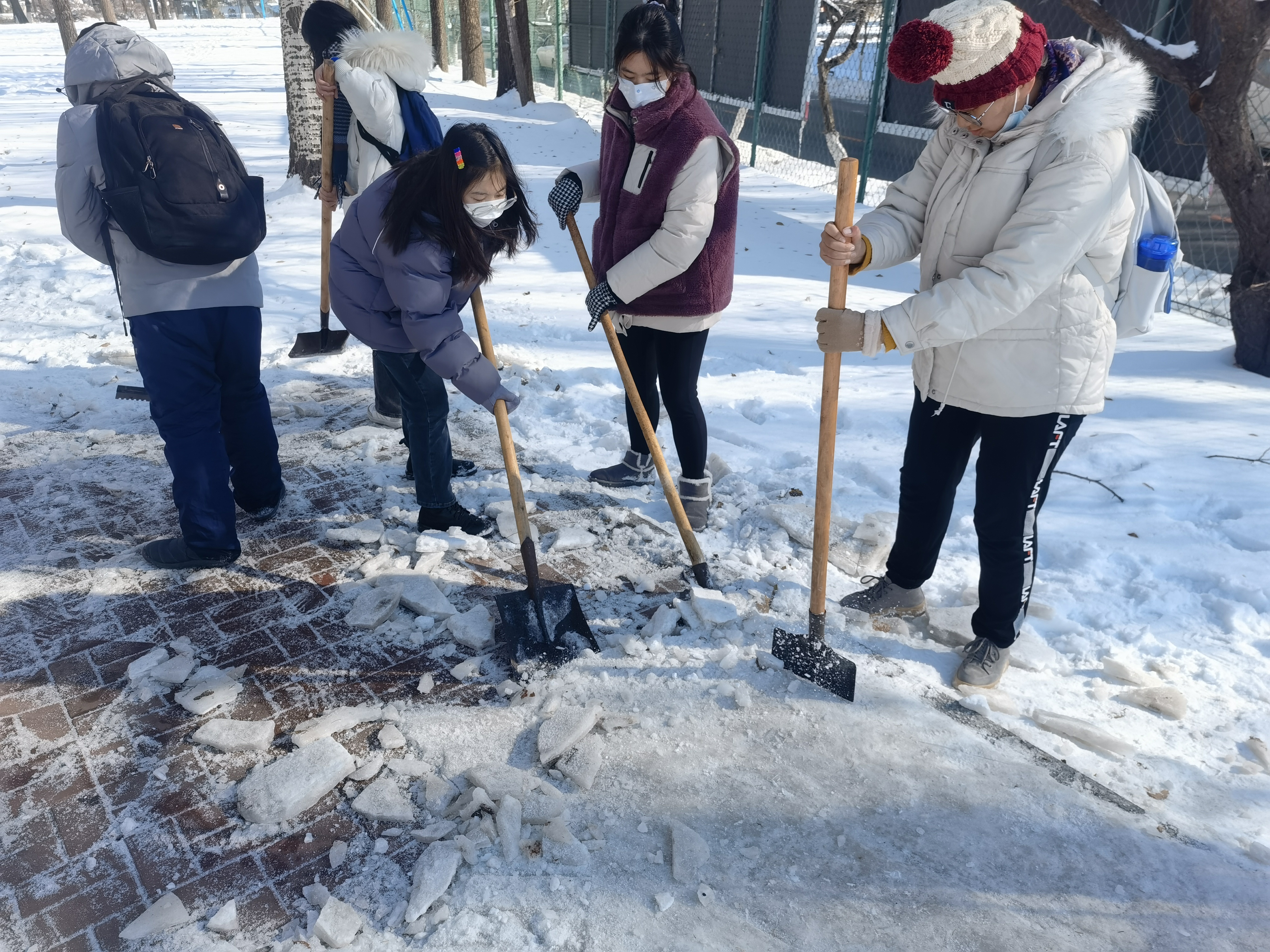 下过雪后的吉大校园,一片洁白宁静的景象,处处显出北国风光的独有魅力。然而雪后气温寒冷,降雪频繁,雪后校园道路结冰,对师生出行造成了极大困扰。为了全面发挥入党积极分子的先锋模范作用,培养服务意识、责任意识和奉献意识,贯彻学院劳动教育的精神宗旨,同时更是为了校园师生的安全出行,避免走路打滑摔跤,为校园增添一份温情。11月12日中午,亚洲av