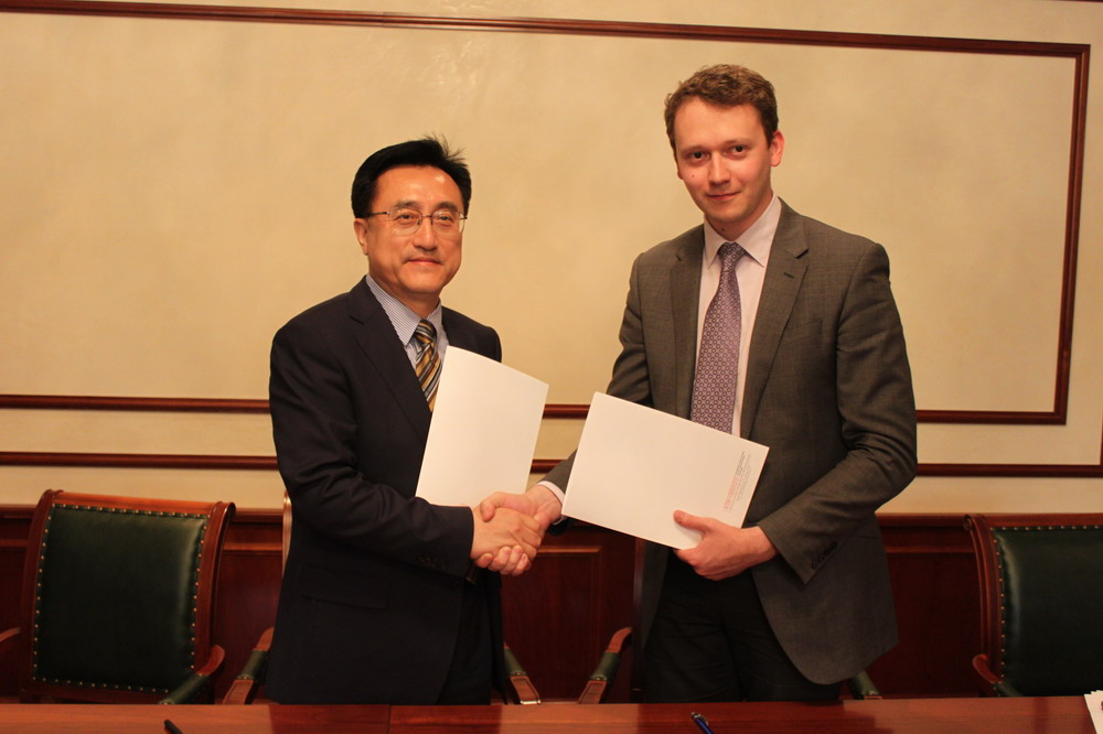 5月26日下午,代表团还应邀访问了莫斯科国际关系学院,莫斯科国际关系学院副校长安德列•巴维科夫(Anatoly Torkunov)教授和政治学系主任阿列克谢•沃斯科列先斯基(Aleksey Voskresenskiy)教授等就如何开展双方合作与交流进行了热烈的探讨,并签署了学术合作备忘录。莫斯科国际关系学院官方网站对亚洲av代表团的到访进行了报道,//mgimo.ru/about/news/main/vstrecha-s-delegatsiey-tszilinskogo-universiteta/。