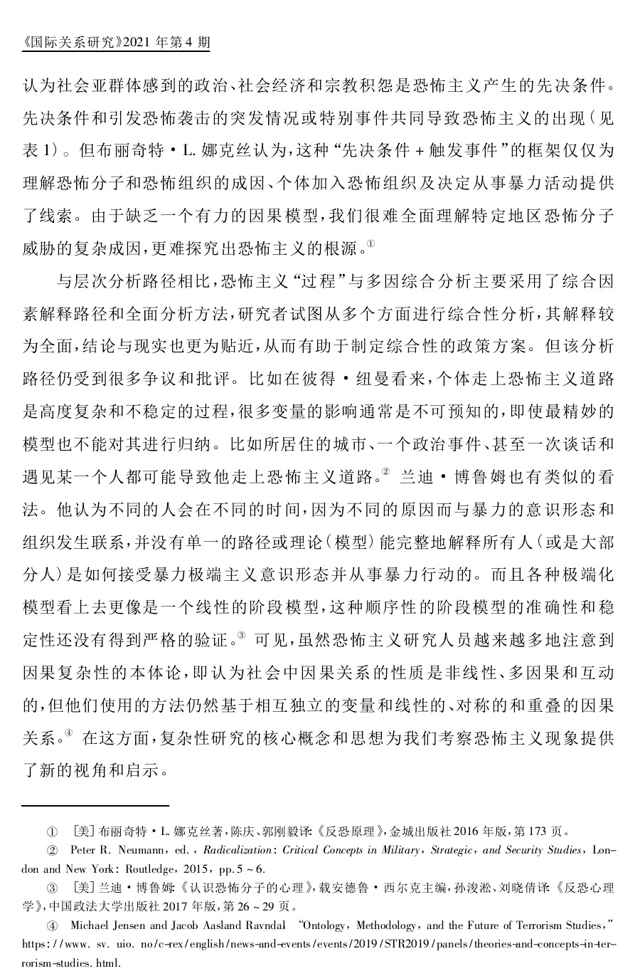 富育红:层次、过程与复杂性研究-恐怖主义溯因研究路径述评