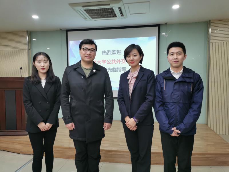 的基本概况,并为宣讲团四位成员授予了“辽宁大学国际关系学院荣誉院友”称号,赠送学院院徽。