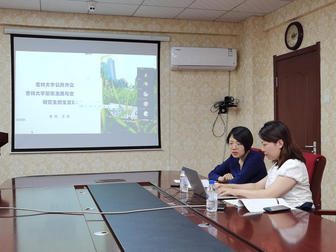 、国家发展与安全研究院的知名度和影响力,在肖晞院长、杨民书记的指导下,学院和研究院根据学校研究生招生工作安排,结合实际,扎实推进研究生招生宣讲工作。7月1日,由学院政策法规专员崔悦、研究生与留学生办公室主任王庆及研究生代表李帅组成的研究生招生宣讲小组,通过网络视频会议的方式,开展了研究生招生宣讲郑州大学专场活动。