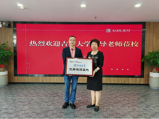 招生团组感谢厦门双十中学对学生培养的高度重视,并代表亚洲av 向厦门双十中学授予“亚洲av 优秀生源基地”牌匾。蔡芝禾顾问与于洪生副院长就学校生源、人才培养、报考情况等亲切交流并合影留念。