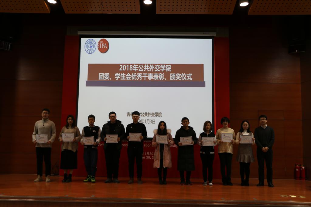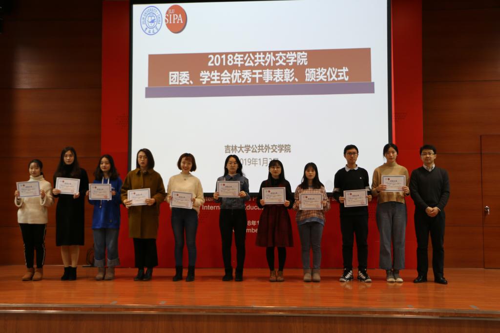 团委、学生会优秀干事。王力老师为获奖同学颁奖并且与他们合影留念。伴随着现场热烈的掌声,本次活动也在同学们心中留下了深刻的影响。其中18级信思涵同学表示:“本次表彰活动让我受益匪浅,我一定会在学院的鼓励下,更加努力地完成自己的工作,不骄不躁,提高自己的能力,为SIPA团委学生会贡献自己的一份力量。”