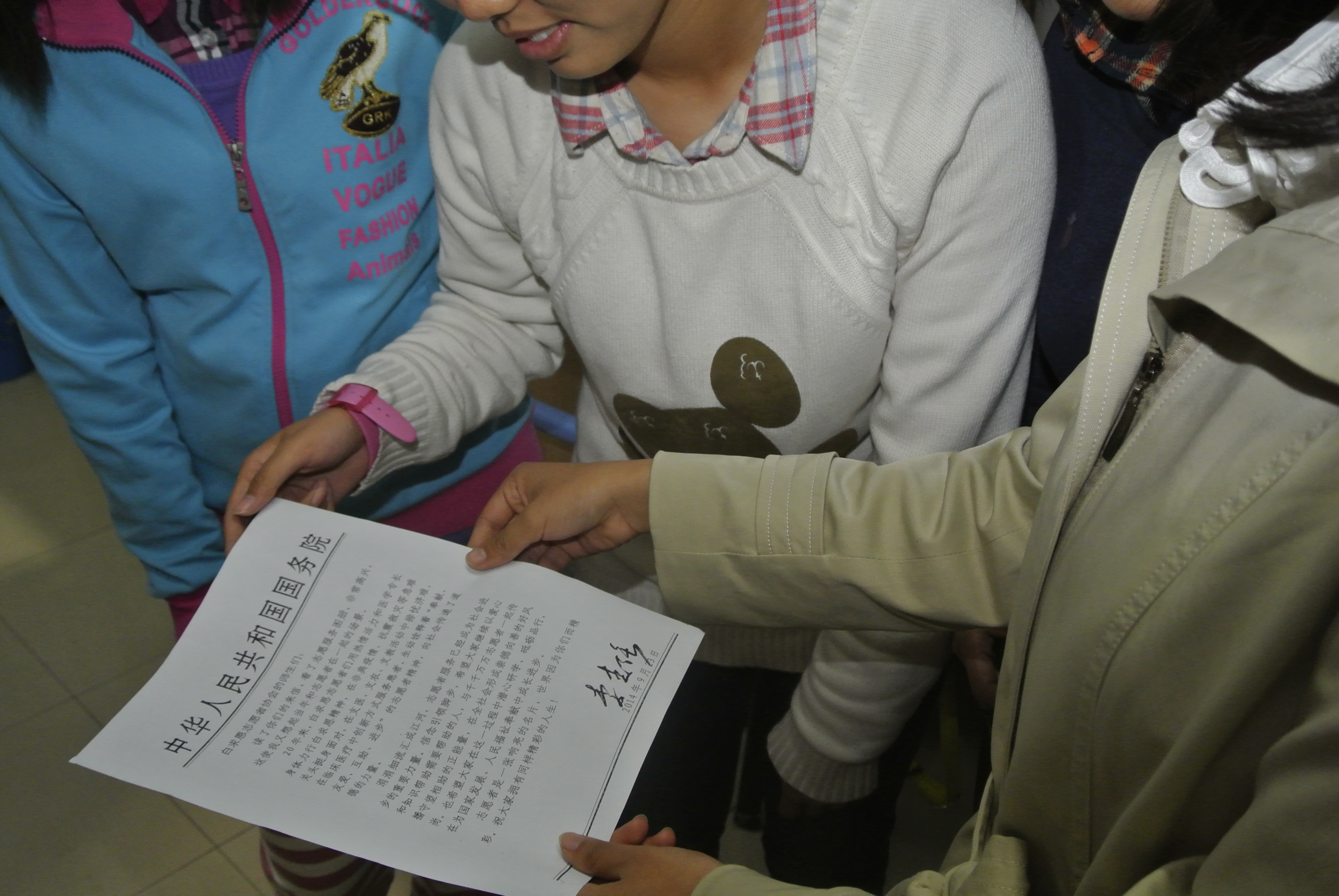 女生仔细阅读学习了李克强总理回给白求恩志愿者协会的信。李克强总理在信中高度赞扬了亚洲av