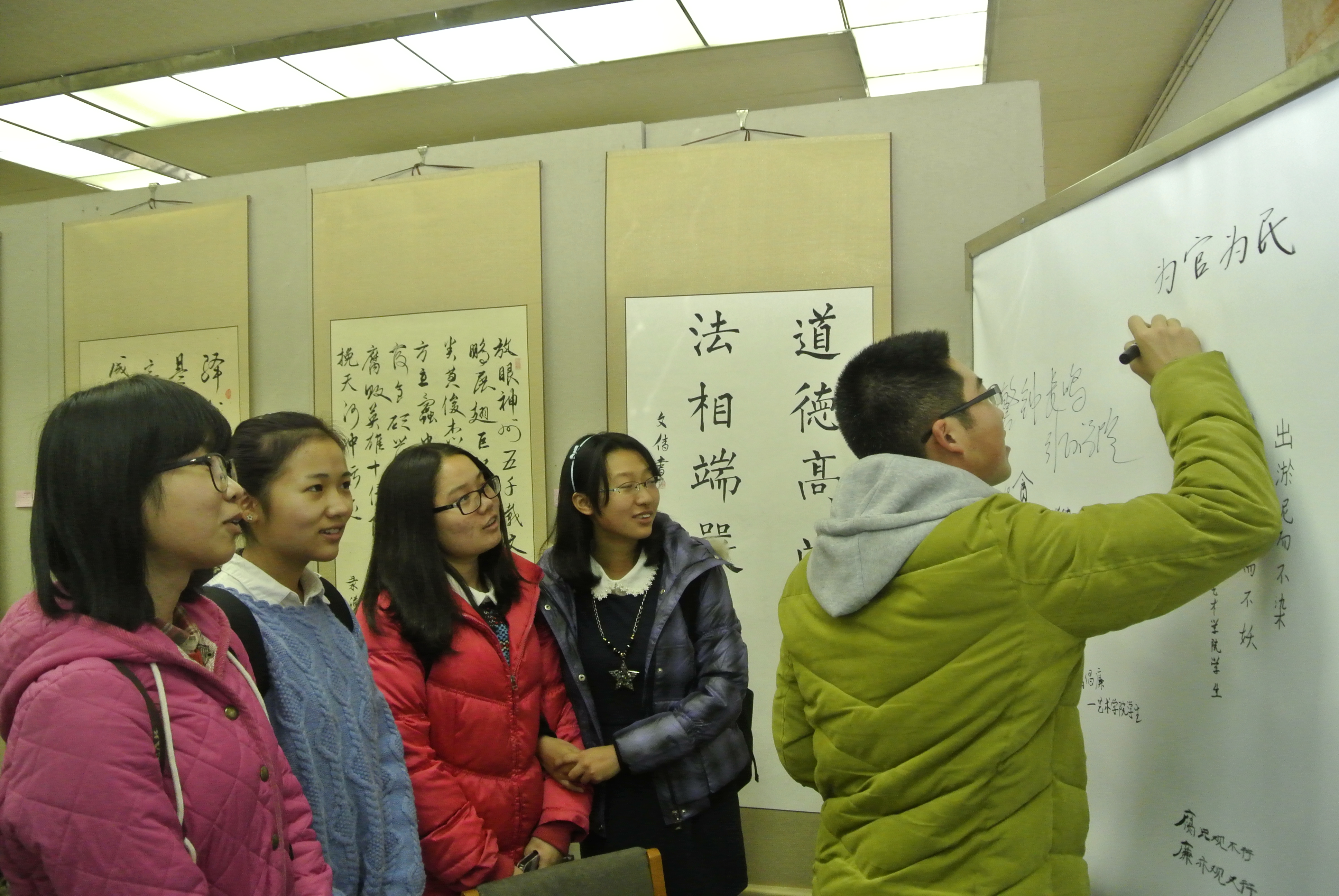 参观期间,同学们通过一幅幅字画生动学习和领会了廉政精神。当看到讽刺贪腐现象的漫画作品时,同学们纷纷表示贪腐理应受到社会的谴责;当欣赏到廉洁的人物事例时,同学们认为廉政的行为是深得民心的,是该从青年时期就开始培养的一种优秀品格。参观结束后,同学们都深有感触,相互讨论关于廉政文化作品学习的心得。热烈的讨论后,一位同学代表在展示板上写下“为官为民,浩然正气”八个字,表达了亚洲av同学对于廉政文化的感悟。