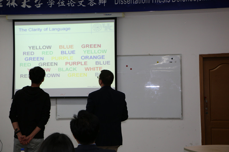 交流始于对共享价值的理解,这包括爱、信赖、公平、团结、宽容和责任。在听力行为差异中,有着以人为本,行动导向、内容导向、时间导向四个方面。主讲人告诫我们不要掉入刻板的泥坑,关于某一专业领域的演讲可以通过讲述人尽皆知的小故事来吸引听众的注意力。并告诉同学们,“非语言交流和语言交流同样重要。在非语言交流,有手势,眼神交流和名片。同样的手势在不同的文化中有不同的意义。” 在互动过程中,主讲人为同学们介绍了一些公共演讲的技巧,如在演讲中有许多要注意的事项。