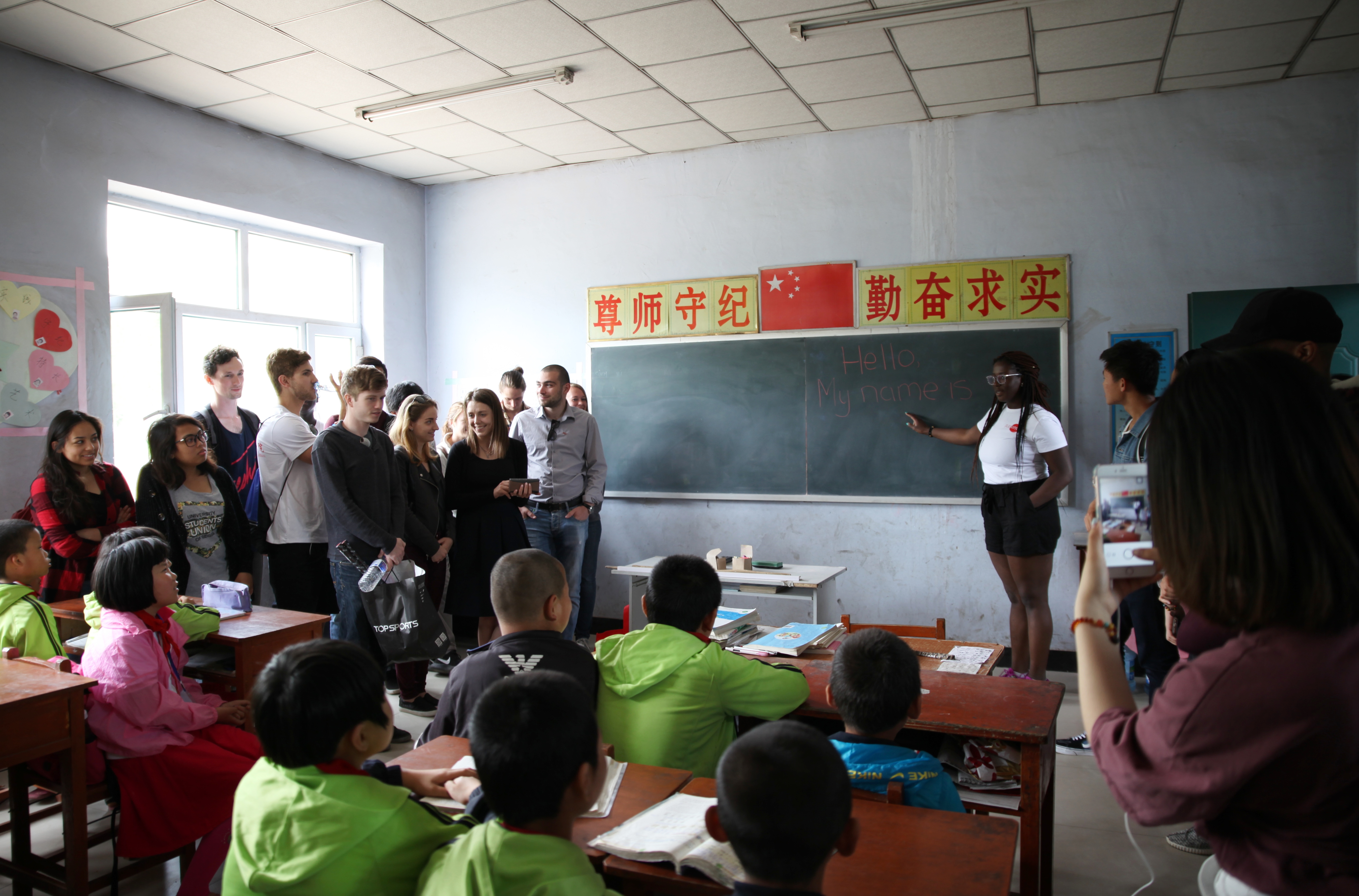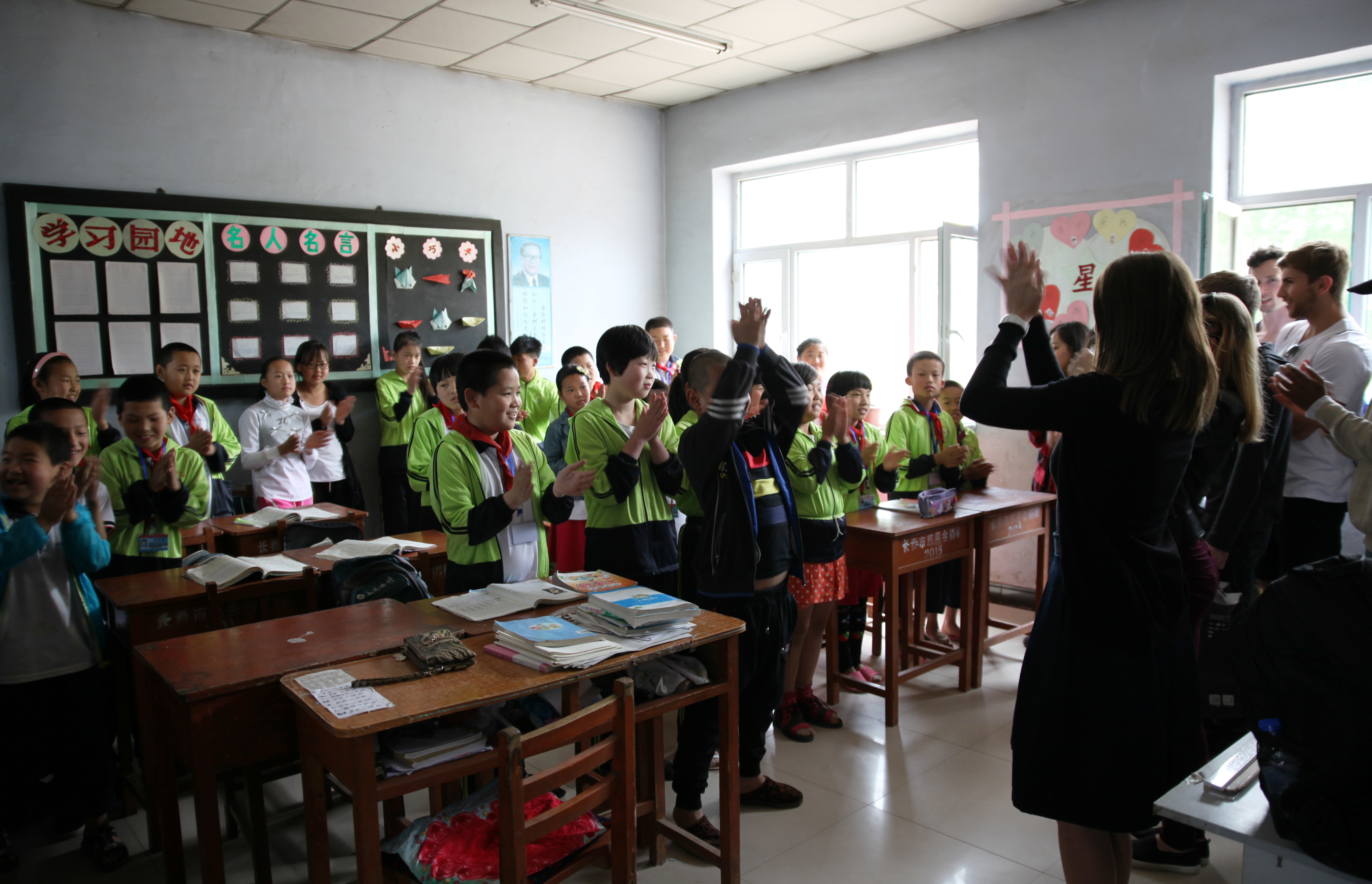 师生和正在亚洲av参加暑期班的里贾纳大学的留学生一同来到了农安县万金塔乡小城子村小学。当大家一走进五年级一班的教室,就立即被孩子们热烈的欢迎声所感染了。一张张稚气未脱的脸庞上洋溢着最纯真的微笑。微笑是没有国界的,这些来自异国的大哥哥大姐姐们被这些纯真的笑脸瞬间感动了。