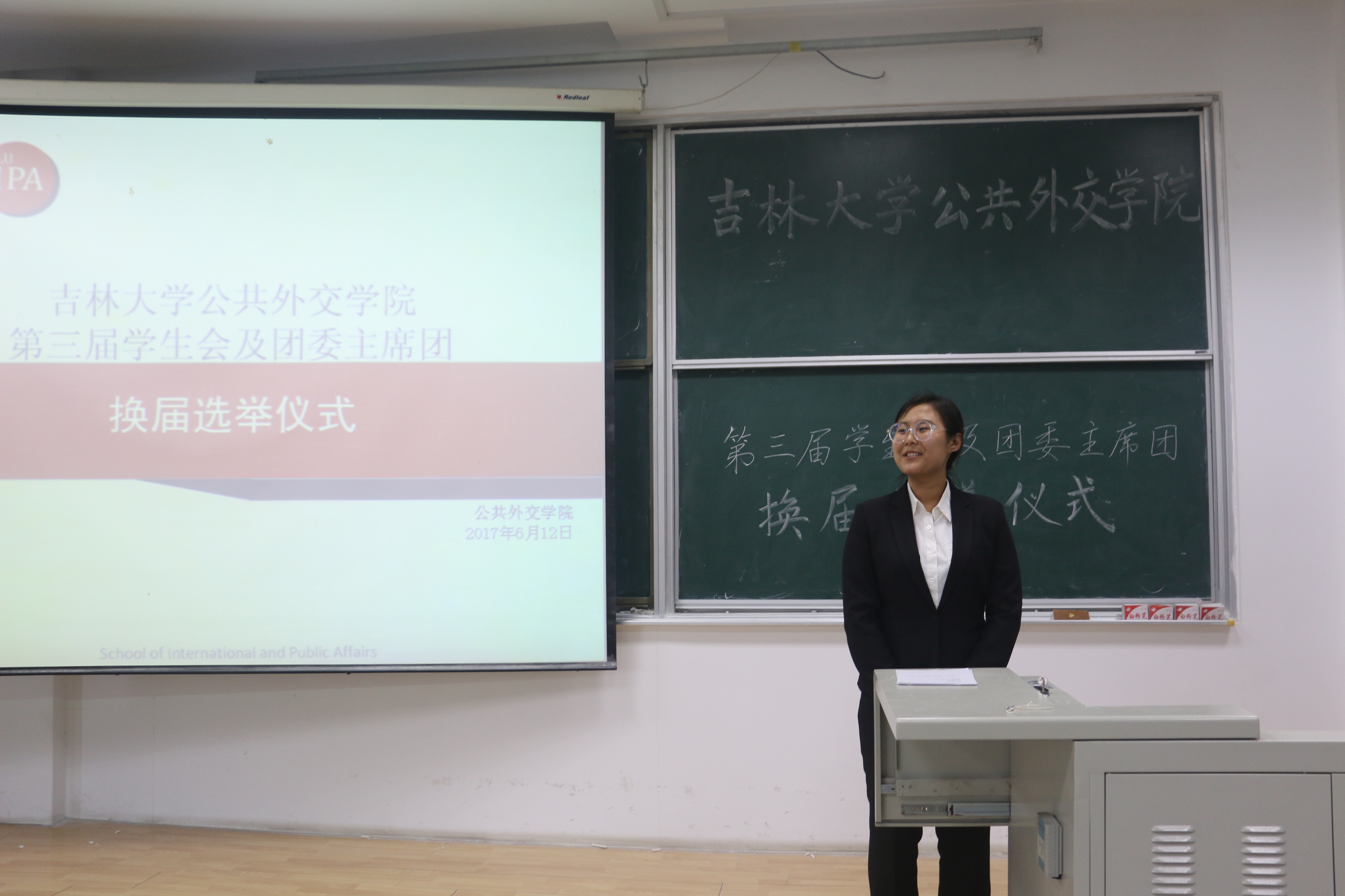 6月12日晚6点,亚洲av于逸夫教学楼第十二阶梯教室成功举办第三届团委学生会主席团换届选举仪式。本次活动由学生会主席梁鲁广同学主持,辅导员张淑艳老师出席了本次换届选举仪式。