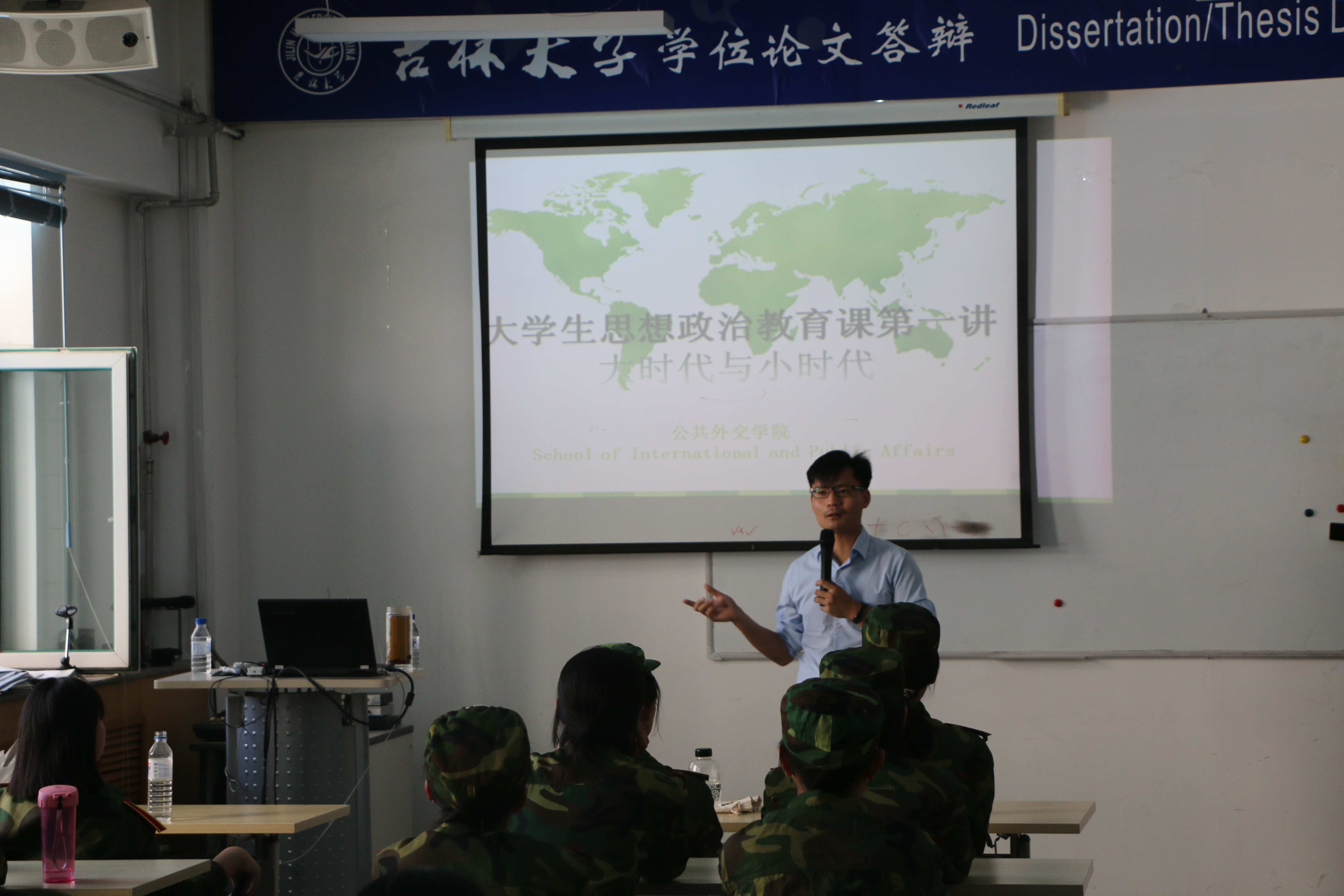 孙老师围绕当今的国际形势展开了教育内容,反思小时代,触摸大时代。老师信手拈来,侃侃而谈;同学们凝神静思,目光紧随。大家不再以仰视的姿态观望政治或拾人牙慧以作饭后谈资,而是尝试以专业的思维看待问题。