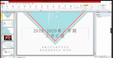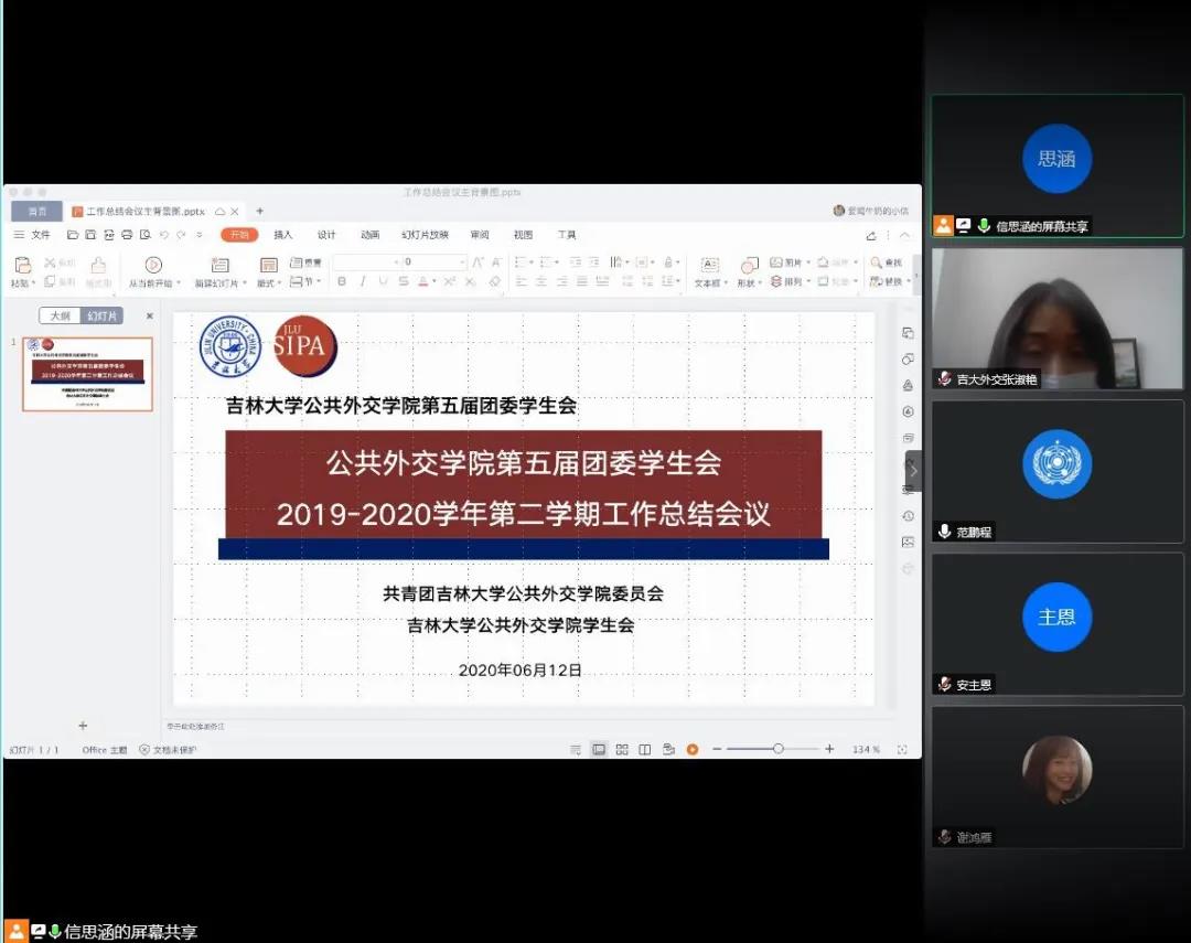 第五届团委学生会线上召开了2019—2020学年第二学期工作总结会议。本次会议由院团委学生会文体部部长信思涵主持,学生工作办公室主任王力老师、学院团委书记张淑艳老师、辅导员高梦鸽老师出席本次会议,第五届团委学生会2017级、2018级全体学生干部参加本次会议。
