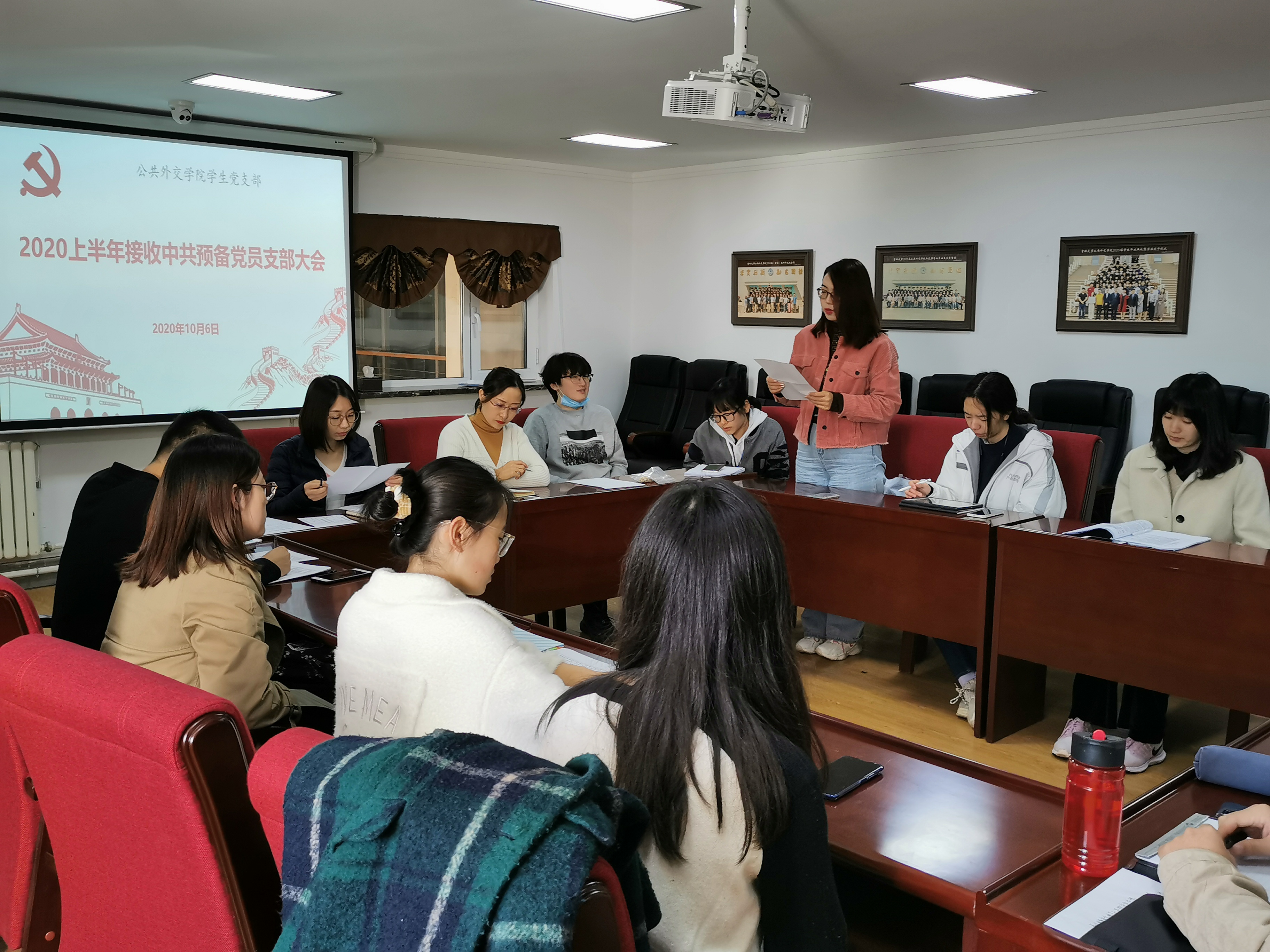 学生党支部在行政楼二楼会议室召开支部大会,讨论关于接收2017级本科生李淑琴、田慧两位发展对象为预备党员事宜。会议由学生党支部书记张淑艳老师主持。
