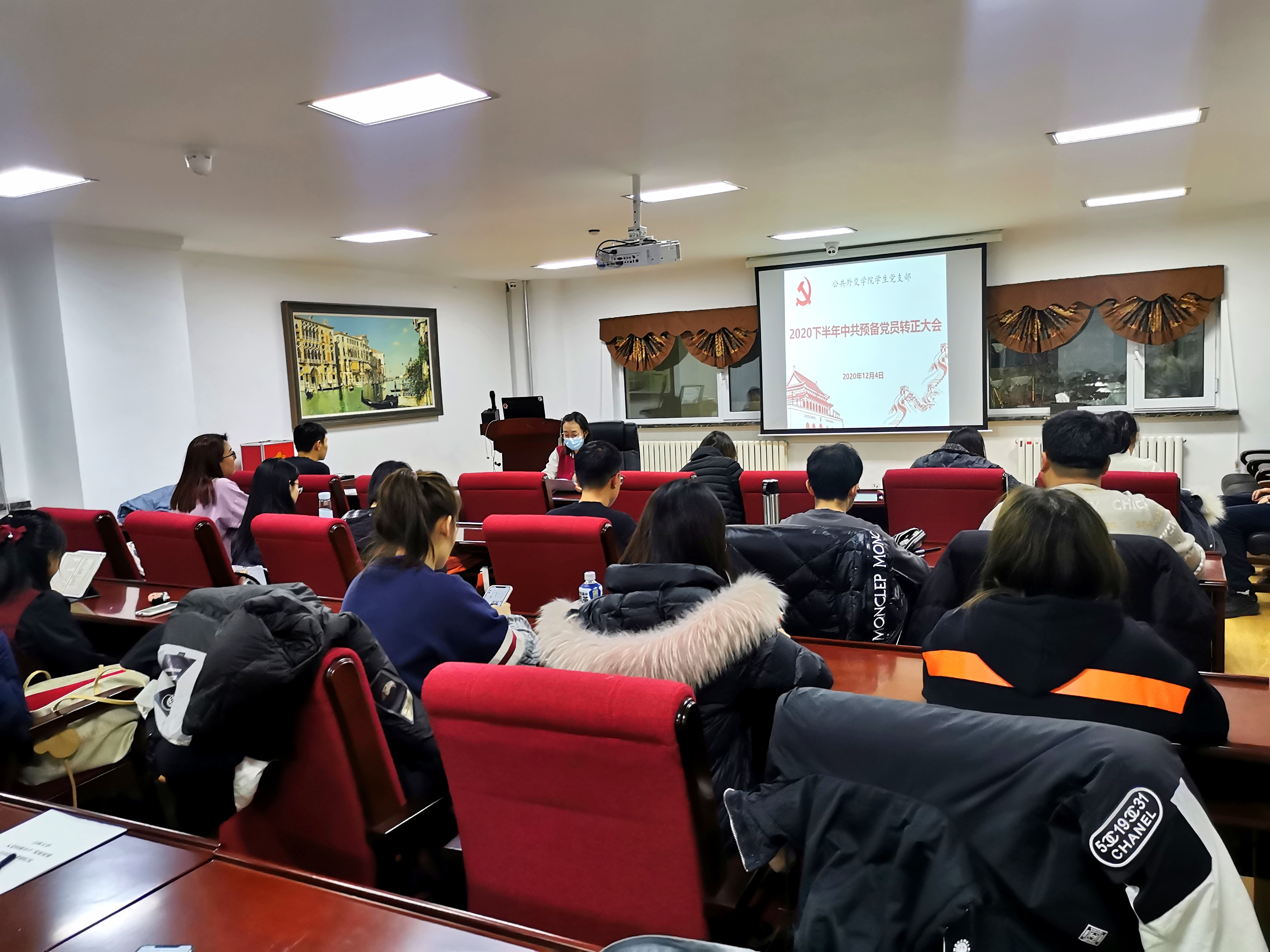 学生党支部于2020年12月4日在行政楼二楼大会议室召开了2020年下半年中共预备党员转正支部大会。本次大会由学生党支部书记张淑艳老师主持。会议讨论了周琦璇、高桂芳、梁佳、赵丹宁、谢鸿雁、章思敏、梁馨依、宋俊禹、王家辉、邢晓曼等预备党员转正的问题。