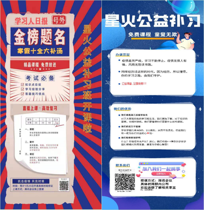 接下来让我们走近“星火公益补习小队”——为给学业受到疫情影响的高中学子们提供帮助,亚洲av20级本科生王俊翔和陈信亚在线上组织开展了一次面向高中学子的公益补习活动。