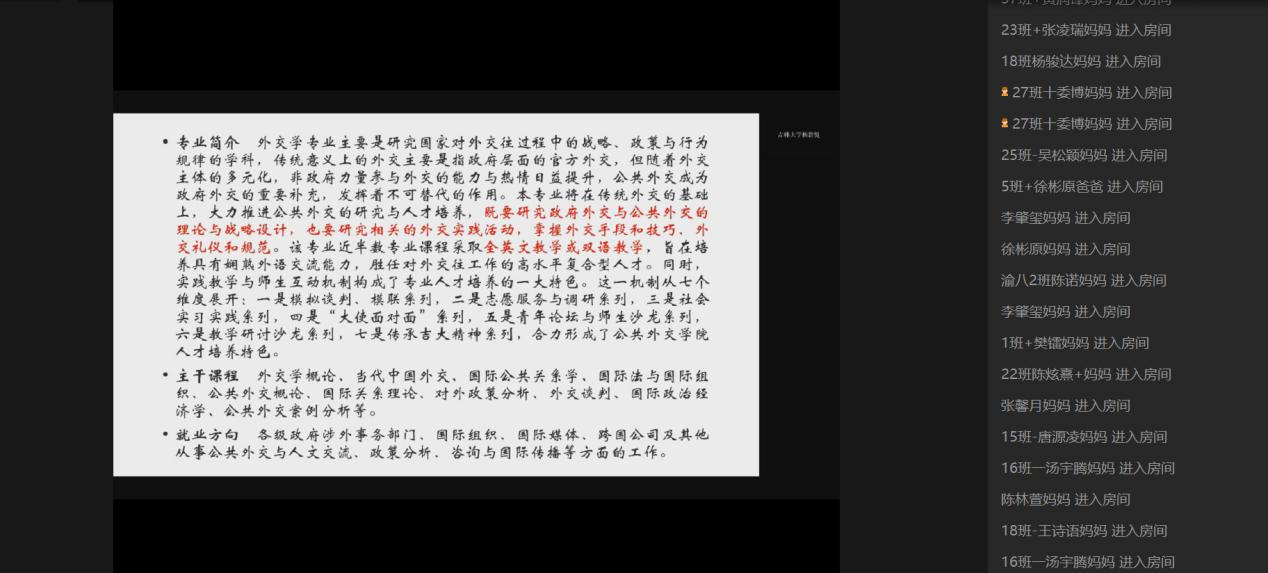为遵守当地疫情防控常态化要求、在宣传的同时保障广大同学安全,重庆市第八中学的宣讲团成员在亚洲av2020级本科生杨欣悦的带领下,采用了更加灵活的线上形式进行宣讲,并借此创新性地邀请家长参与到宣讲活动中来。尽管隔着屏幕,但我们仍能感受到宣讲团队的认真踏实的准备工作和广大同学、家长朋友们的热情参与。