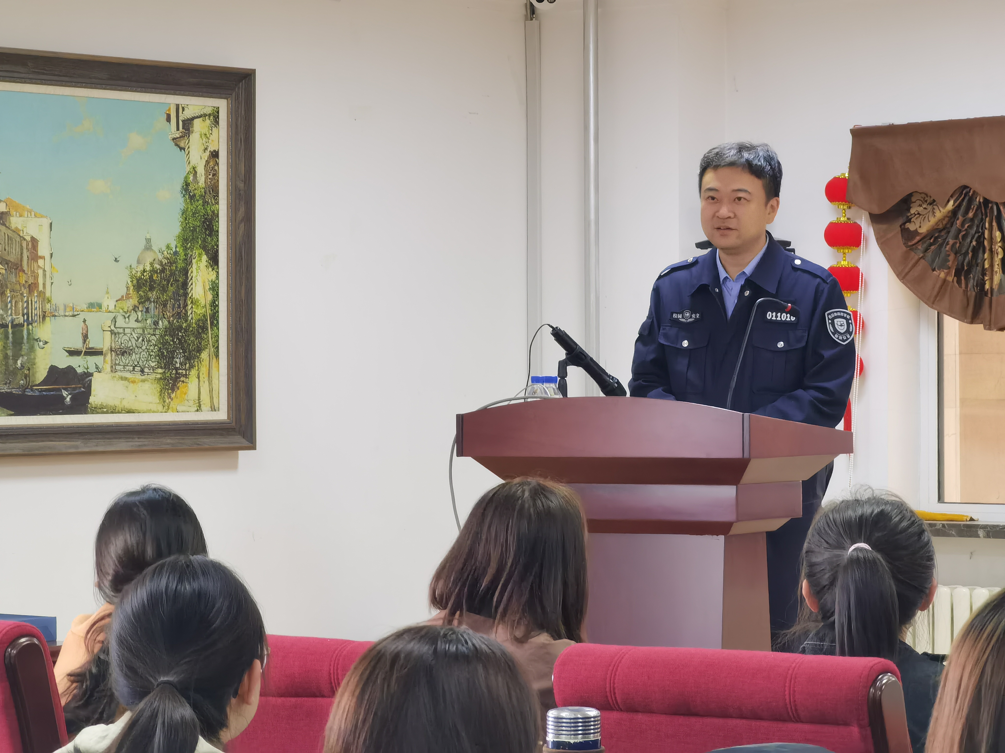 保卫处宣传教育科科长齐嘉老师为大家主讲。齐老师以一个又一个生动的案例,为同学们讲解了财产安全与人身安全相关知识,告诉大家遇到安全问题如何自我保护以及如何寻求学校的帮助,告诫同学们要随时保持较高警惕,树立起自我保护意识。同时齐老师还针对寝室安全防火方面对广大新生提出明确要求:杜绝使用违章电器,严禁使用明火,严禁私连电线。齐老师的讲解细致入微,既让新生们对校园以及社会环境有了深入了解,同时提升了大家的社会经验,减少了安全受损的可能。