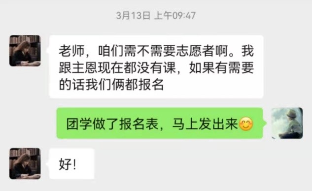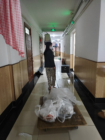 2020级本科生田园在接受采访时表示:“寝室实行封闭管理以来,我光荣成为一名志愿者,作为南苑九公寓二层的负责人,参与南九的防疫调度工作。每天我的核心任务只有一个——确保南九二层的每一位同学都能按时拿到餐食、物资,顺利完成核酸检测。每次敲门时,寝室内传出的一声声‘辛苦啦姐妹!’就是我最大的快乐和最温暖的鼓励。到了晚上,一天的餐送完之后又开始召集第二天的志愿者......每天都是满满当当却充实有意义的时光。岁月因青春慨然以赴而更加静好,世间因少年挺身向前而更加瑰丽。共盼凛冬散尽,静候春暖花开。非常感谢同学们的理解,我们会努力做得更好的!”