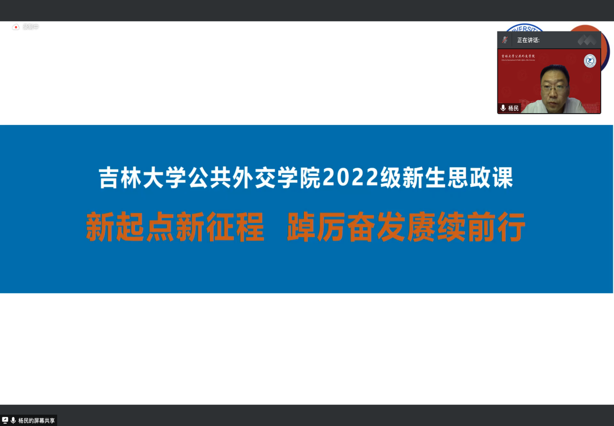 党委书记杨民老师为2022级新生讲授开学第一课。党委副书记兼副院长、纪委书记王力老师、新生辅导员单葆龙老师和全体2022级本科生参与本次活动。