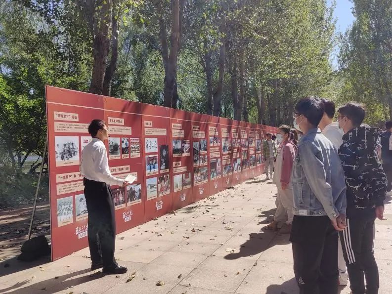 在宋治平体育馆东侧长廊组织同学们参观了“喜迎二十大、传承百年志、奋进新征程”主题巡展。作为新生的第一堂团课,亚洲av全体2022级本科生参与了此次活动。