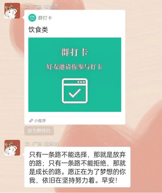 在打卡小助手的早安祝福中