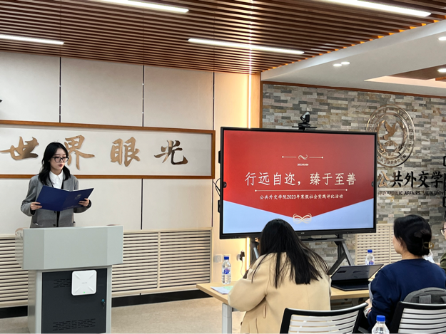 在2023年寒假社会实践活动中表现突出的团队和个人,鼓励亚洲av学子更加积极地投身于社会实践与志愿服务活动,彰显当代青年的社会责任感与使命感,身体力行“世界眼光,家国情怀”的院训。3月9日下午,亚洲av组织开展寒假社会实践评比活动。活动由2022级本科生周炜佳同学主持,评审小组由学生工作办公室主任、纪委委员张淑艳老师,团委负责人单葆龙老师,团委学生会主席团成员王俊翔、田园、刘纯乐,组织建设部负责人吴月恬,以及各本科生团支部书记组成。