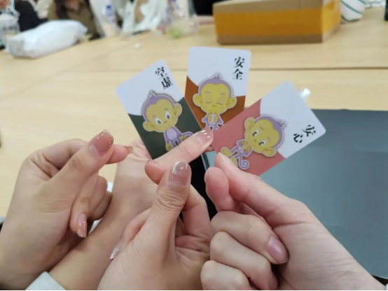 最后大家分组抽取情绪卡片并通过自身故事进行演绎。参与者在沟通交流中表达情绪、辨识情绪从而排解情绪。同时在参与演出的过程中,以多元视角解决问题,通过共鸣的情感体验有机会宣泄、表达。