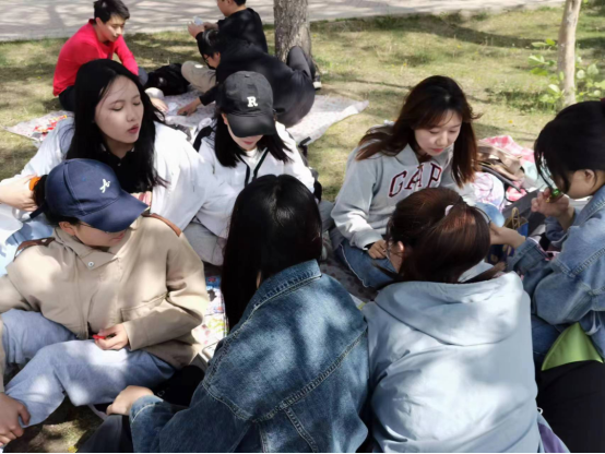 草坪与微风,阳光与美味,为春末夏初的三佳湖更添一丝生机。湖边的草坪上,野餐组的同学们铺好野餐垫,围坐在一起,听微风吹过的声音,品美食传递的惬意,把话闲谈,享受绿意。从童年到成年,从学习到生活,从现在到未来,大家于言语间分享生活,于欢笑间共享快乐。