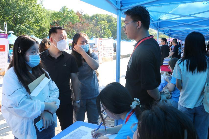 上午10时30分,校党委书记姜治莹莅临学院迎新点,慰问在场老师及志愿者,并了解了学院新生的报到情况。
