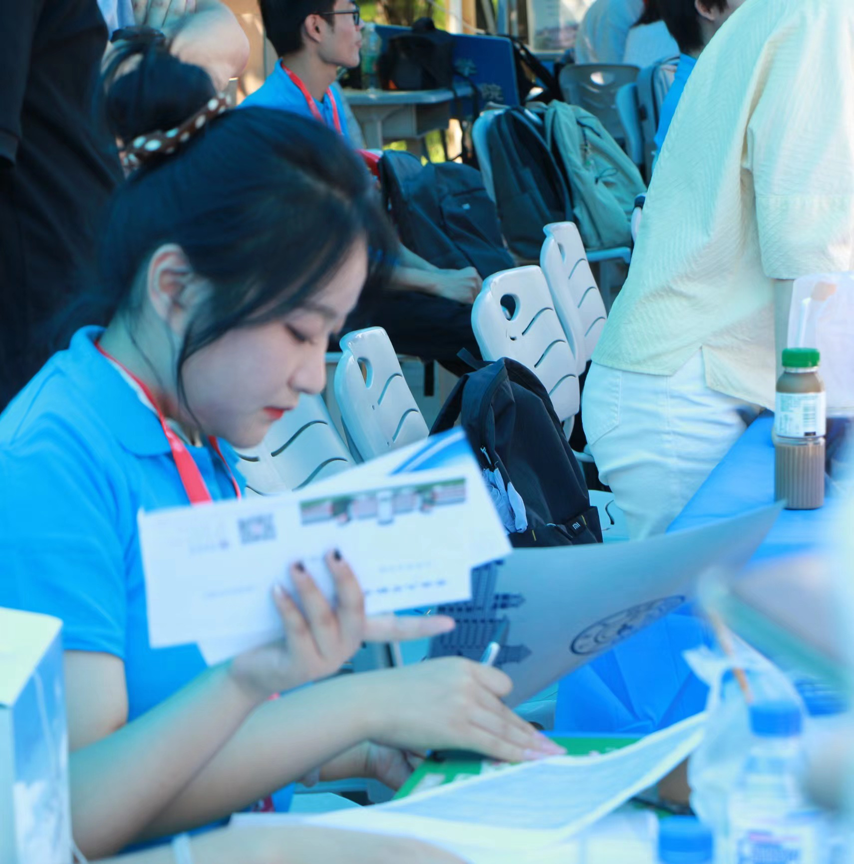 天高气清,惠风和畅,早上7时30分,亚洲av迎新工作人员于学院迎新工作站集合,他们分工明确、各司其职、通力协作,有条不紊地开展迎新前的准备工作,以最饱满的热情迎接新生的到来。