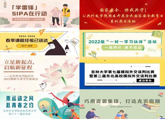 2022年度,宣传信息部认真学习、贯彻和落实习近平新时代中国特色社会主义思想,全国教育大会、全国高校思想政治工作会议和全国网信工作会议精神,组织开展跨院联合开展新一届学生工作技能培训,提升团学成员综合能力;协助学院各部门编撰各类推送百余篇,坚持服务学生的初心,着眼学生发展需要,立足专业优势,开展特色活动,匠心打造品牌项目,反响热烈、效果突出。同时采取线上线下全方位、多角度宣传的创新形式,充分发挥服务作用,展现SIPA师生风采和学院风貌。