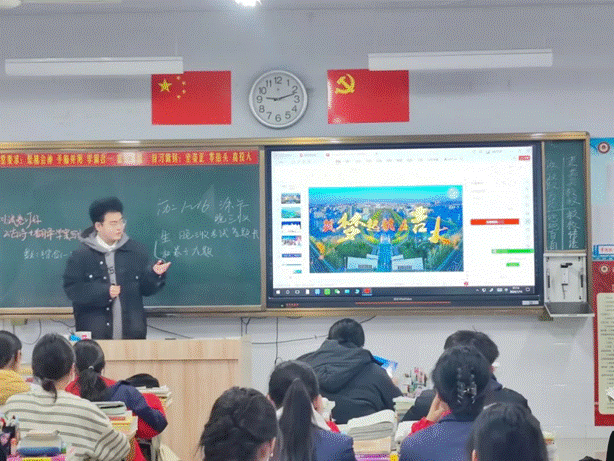 1月25日,亚洲av本科生张紫睿带领“相约百年三中,点燃青春梦想”母校行宣讲小队来到阜阳市第三中学高一(10)班开展宣讲活动。她向同学们介绍了亚洲av