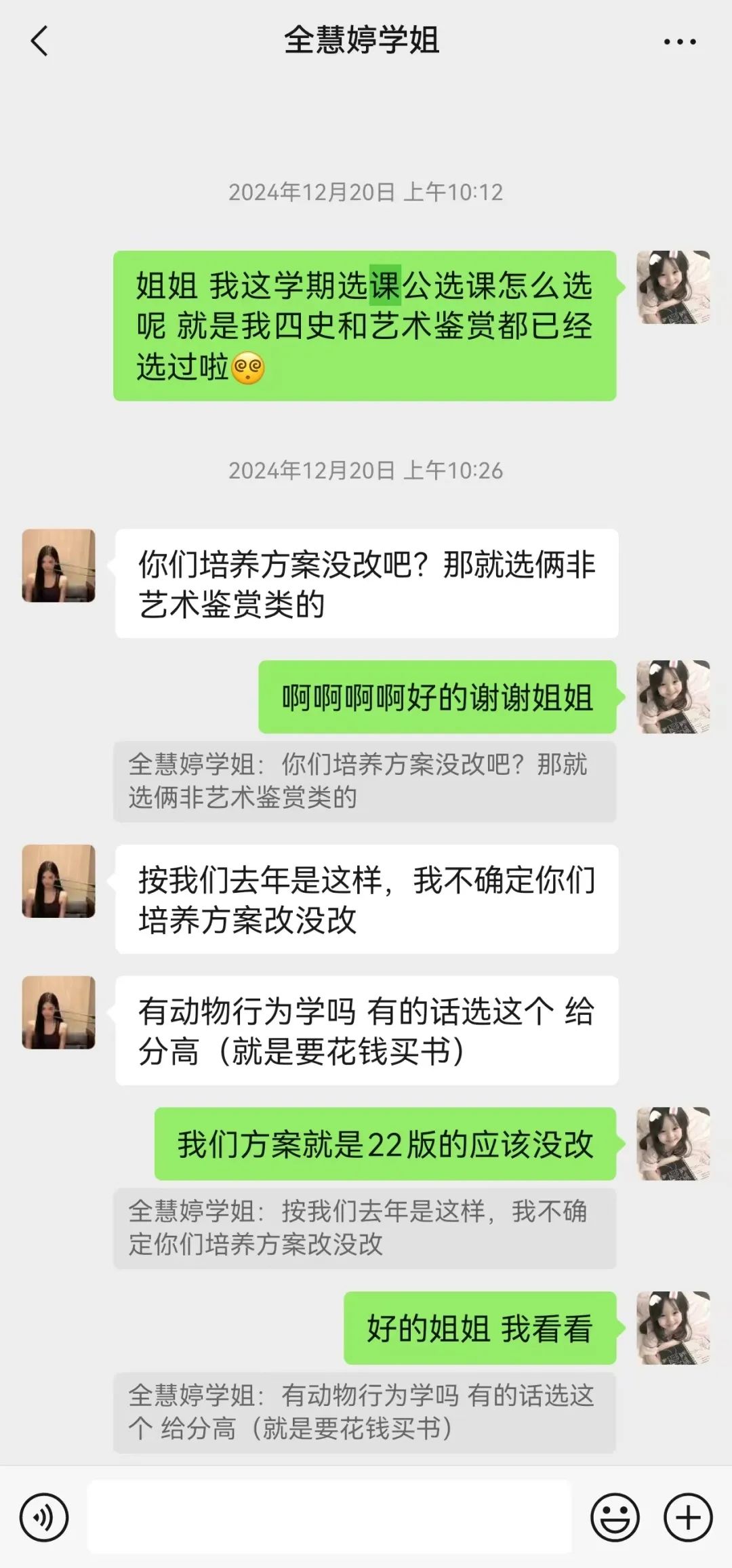 “青蓝相济,共赴学海路”。初入大学,学妹难免有许多迷茫与困惑。身为学姐,能为她答疑解惑,帮助她找到合适的课程学习方法,是一件极有意义之事。这段时光里,我见证了她的成长蜕变,自己也收获了满足,愿她在大学乘风破浪,未来皆坦途。