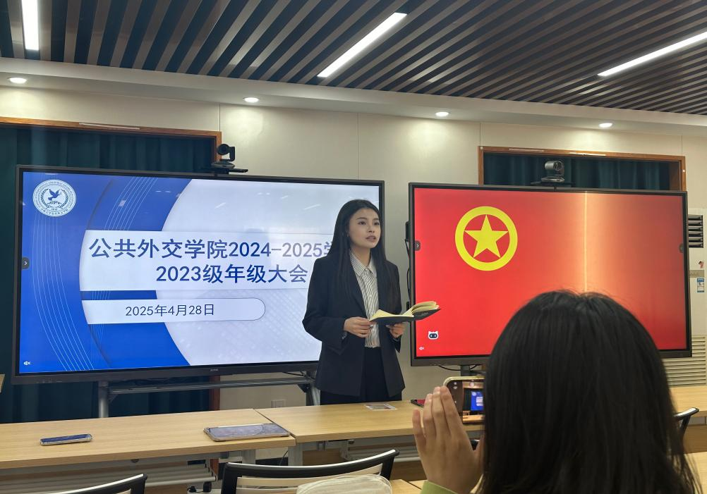 2025年4月28日,辅导员李季航于吕振羽楼818室主持2023级年级大会。本次大会聚焦学生切身利益,围绕假期安全、返校签到、五四活动宣传以及入党积极分子民主测评等重要事项展开。